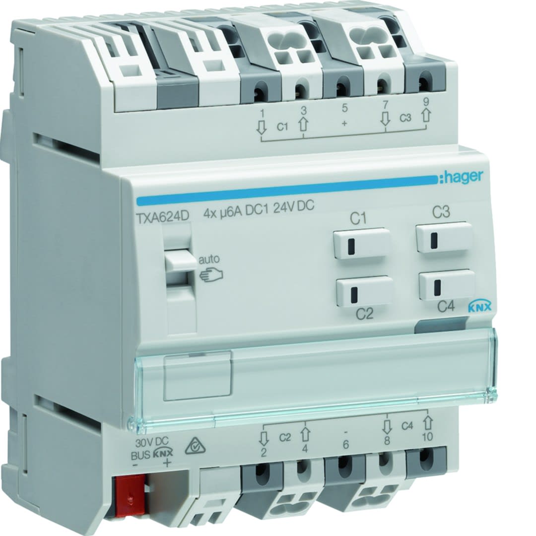 Hager - Actionneur KNX 4 sorties volets et stores à bannes pour moteur 6A/24VDC - TXA624D