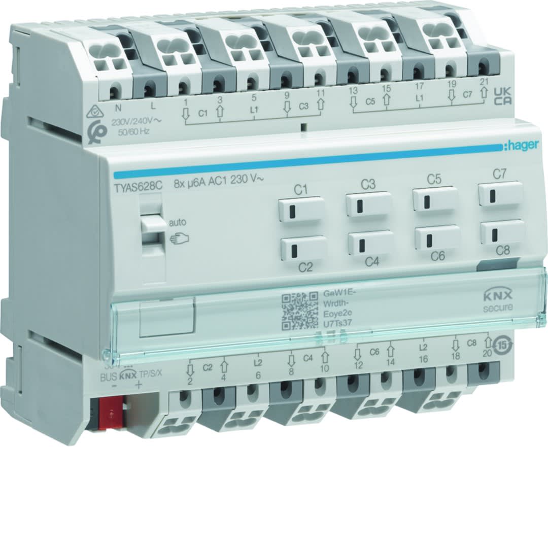 Hager - Actionneur KNX 8 sorties volets et stores à bannes pour moteur 6A/230V - TYAS628C