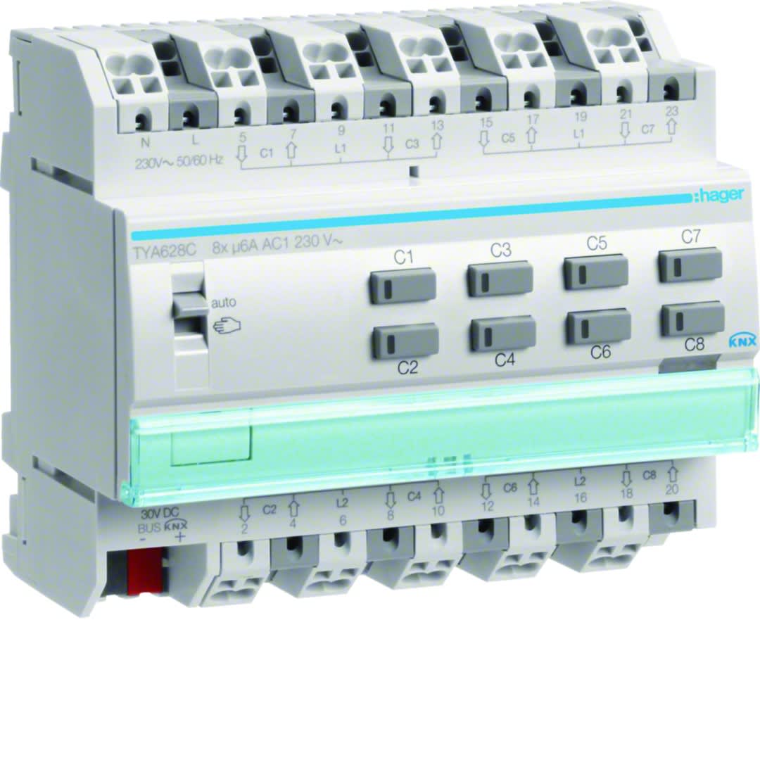 Hager - Actionneur KNX 8 sorties volets et stores à bannes pour moteur 6A/230V - TYA628C