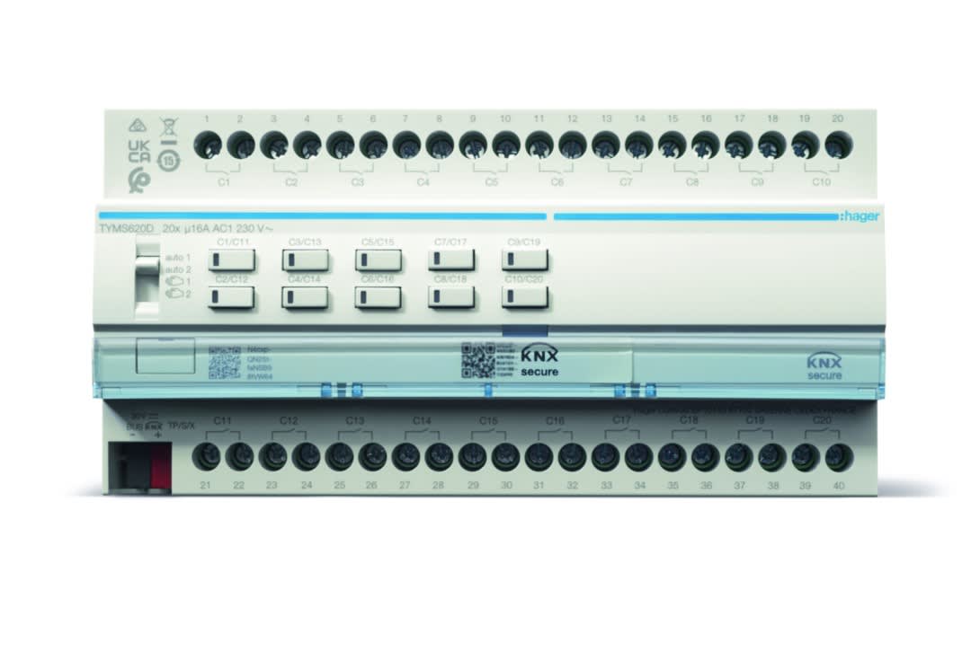 Hager - Actionneur KNX Secure 20 sorties 16A/230V configuration Mode easy/ETS - TYMS620D