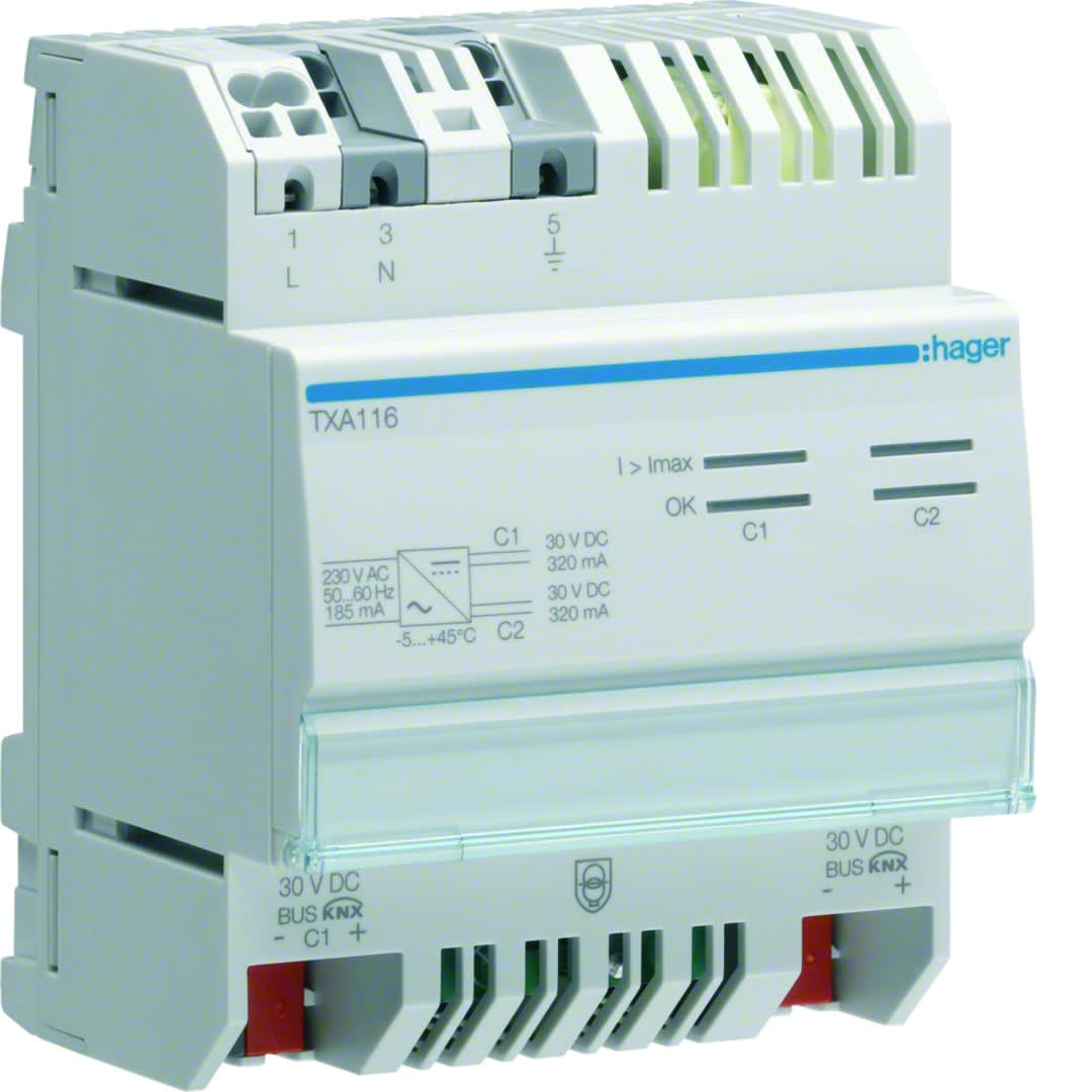 Hager - Alimentation Bus 2x30V TBTS 320mA - TXA116