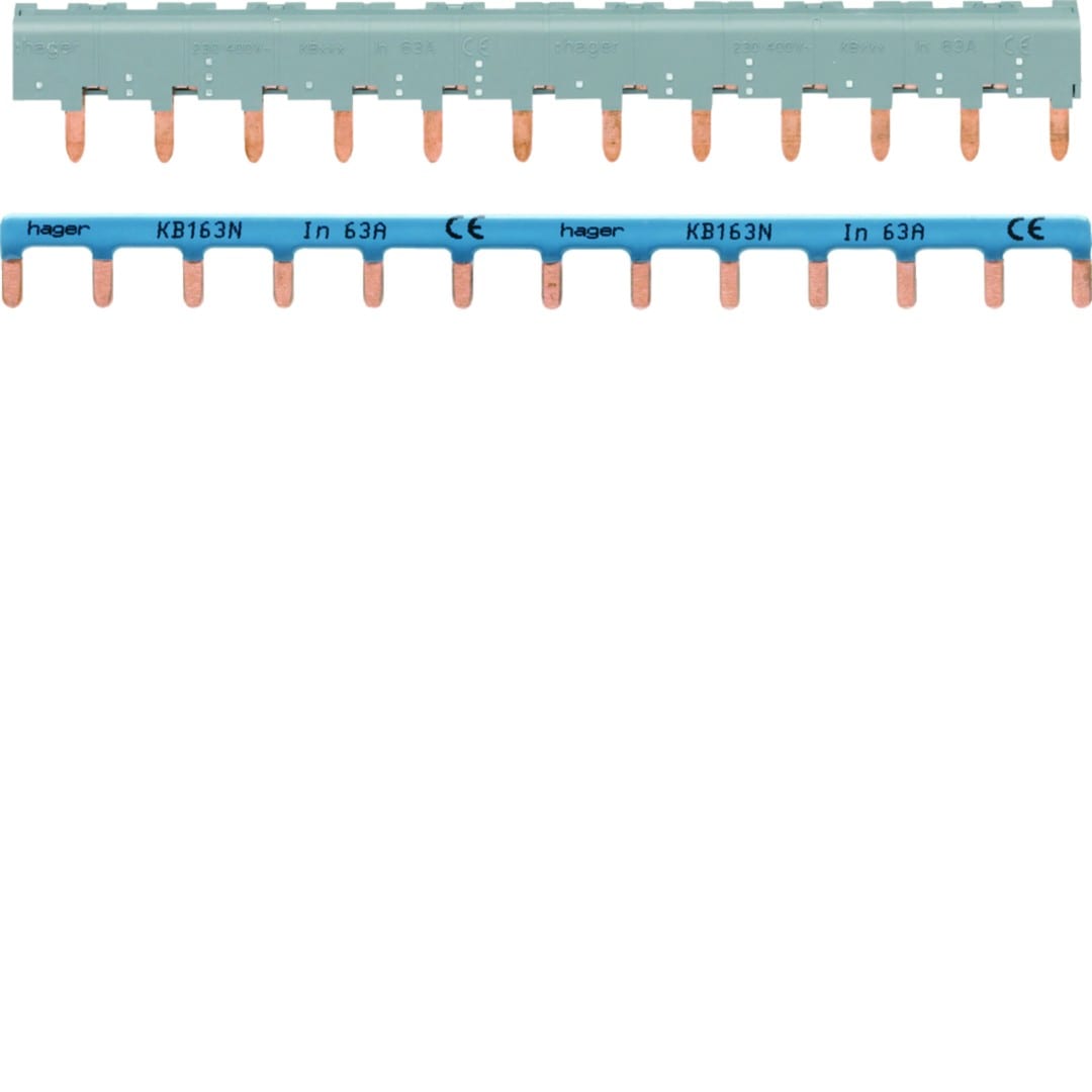 Hager - Barres de pontage 3P+N 63A à languette 12modules pour bornes décalées - KBN863A