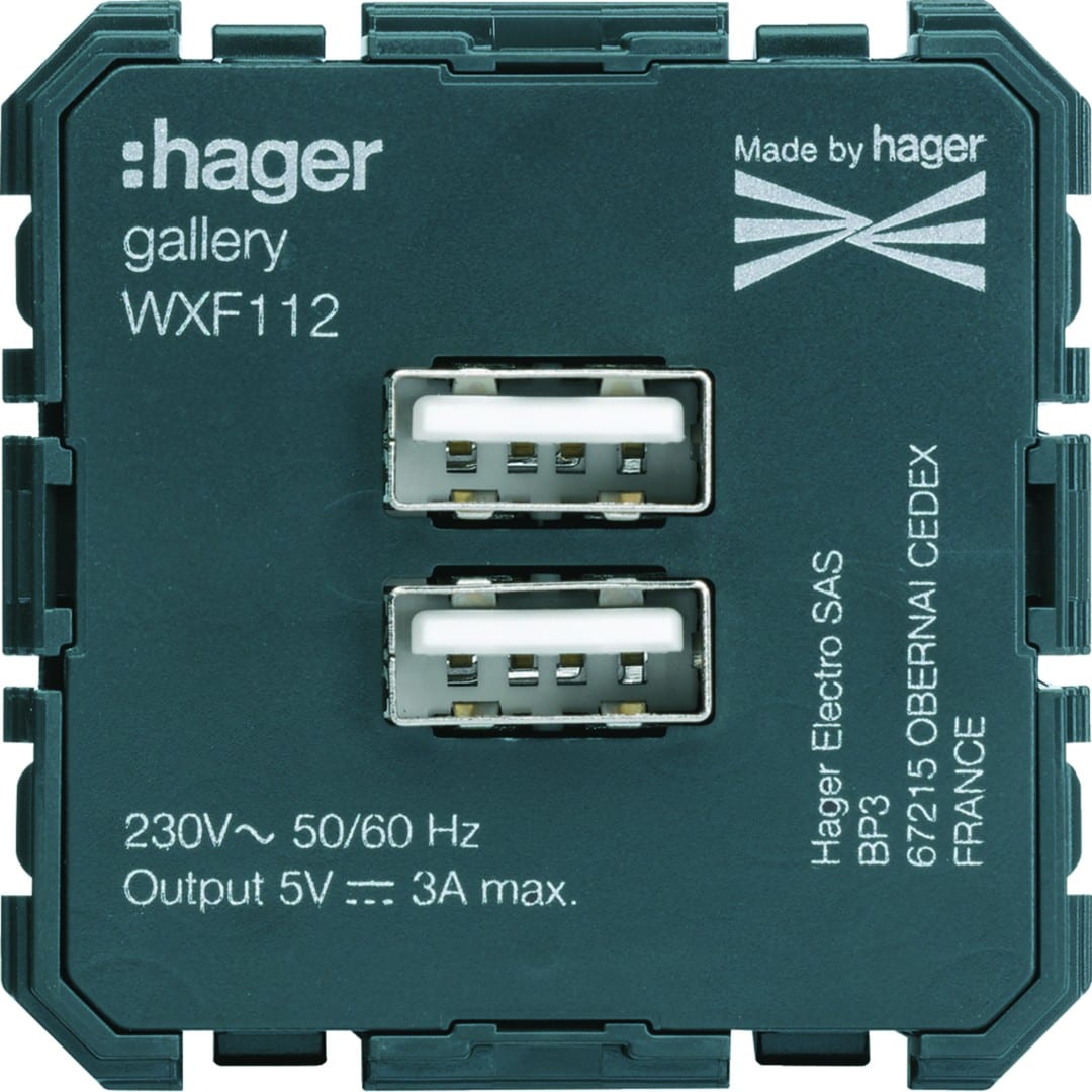 Hager - Chargeur gallery USB A+A - WXF112
