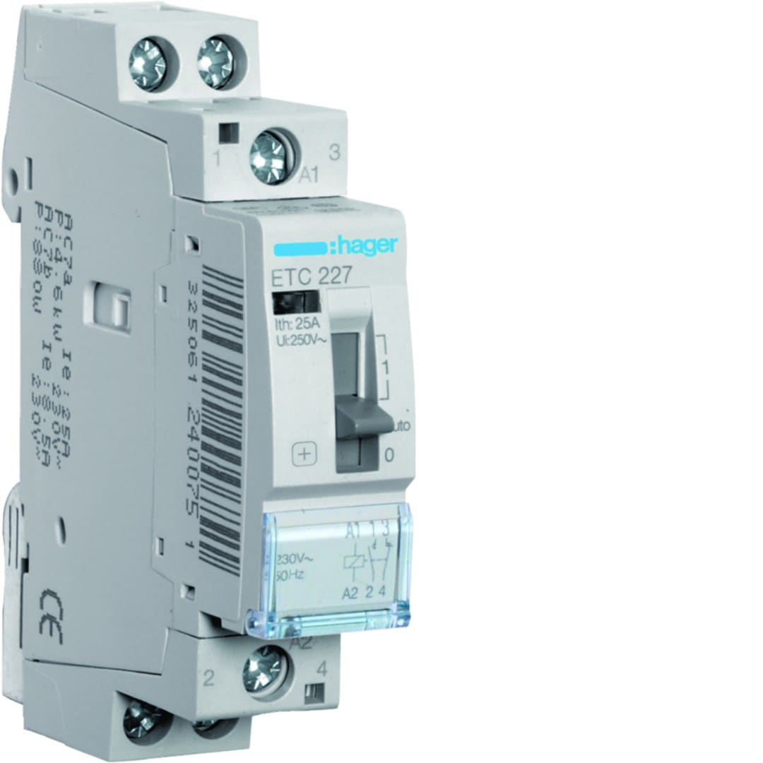 Hager - Contacteur Jour-Nuit 25A, 1F+1O, 230V 1 module - ETC227