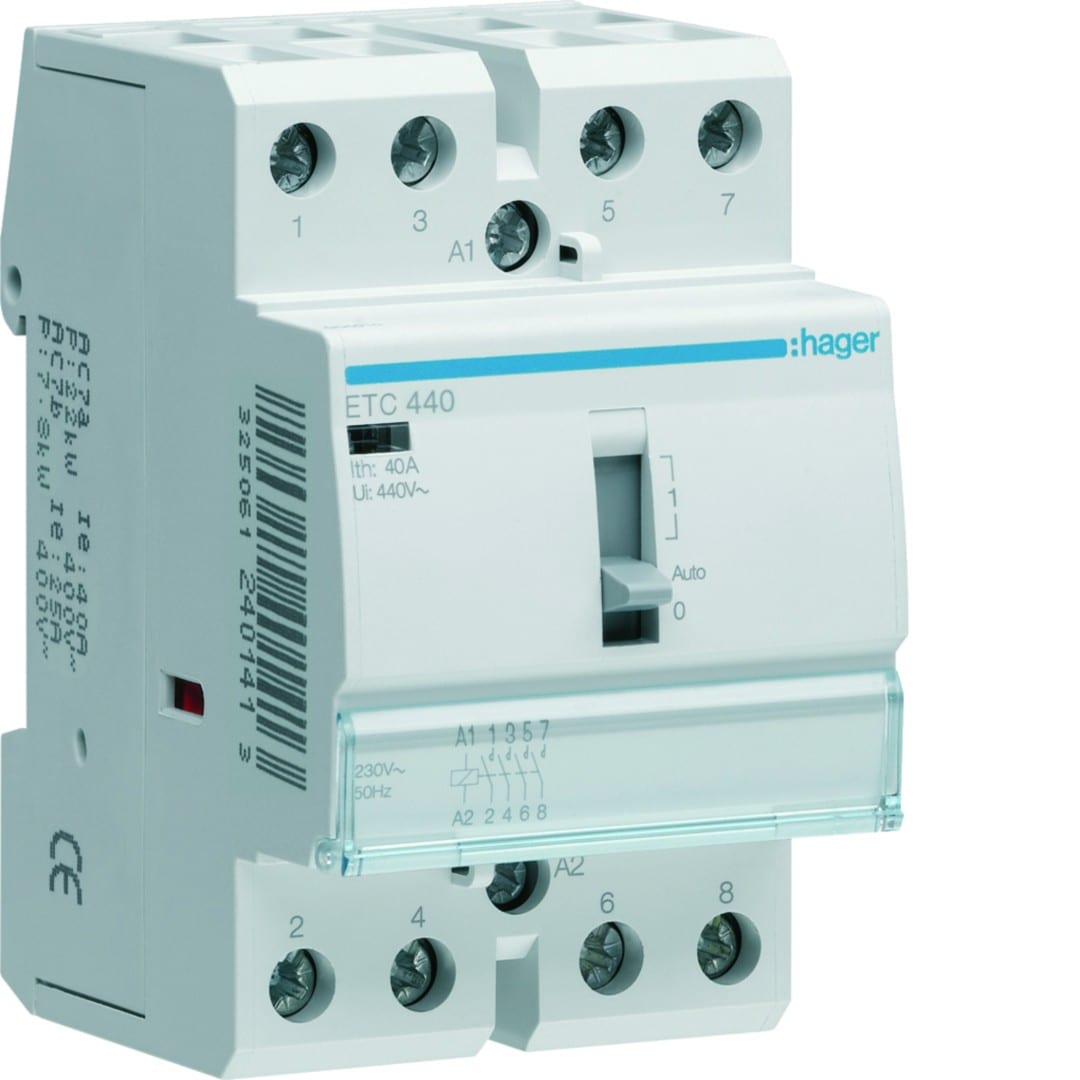 Hager - Contacteur Jour-Nuit 40A, 4F, 230V 3 module - ETC440