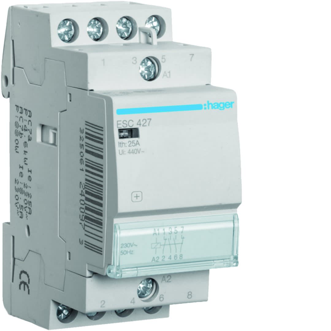 Hager - Contacteur sans commande manuelle 25A, 2F+2O, 230V - ESC427
