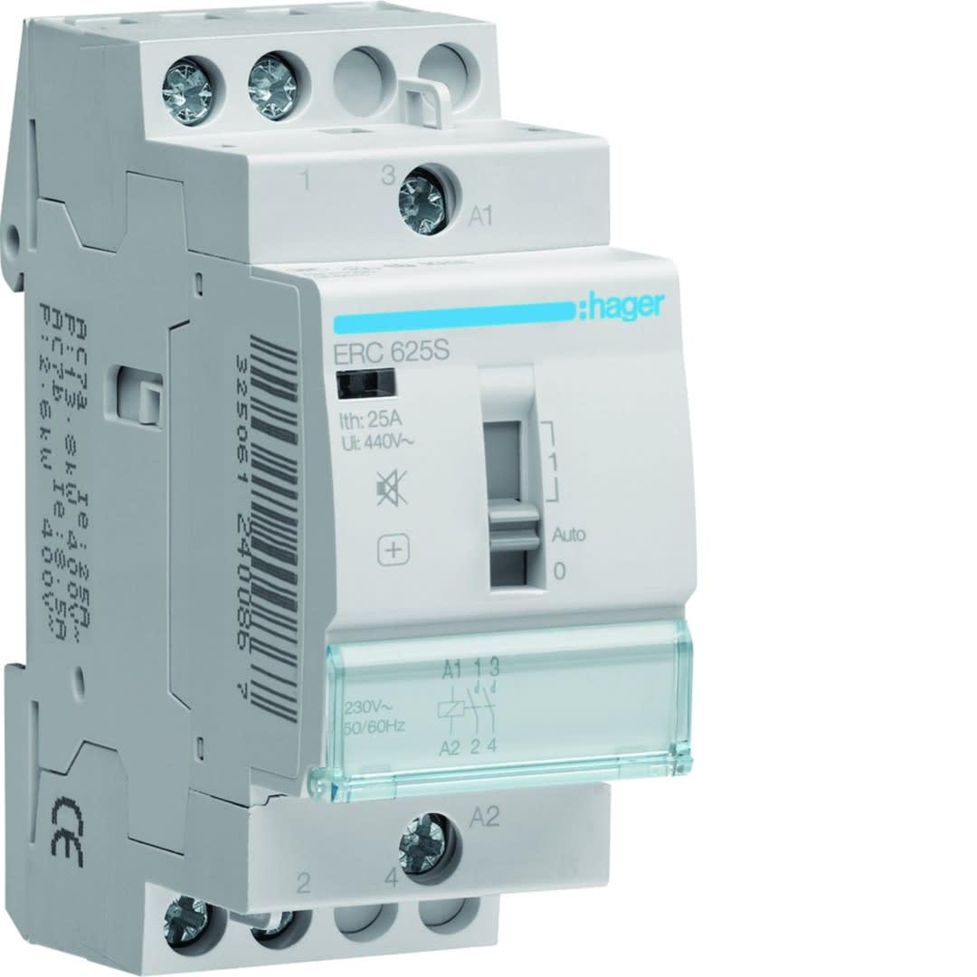 Hager - Contacteur silencieux à commande manuelle 2M, 25A, 2F, 230V - ERC625S