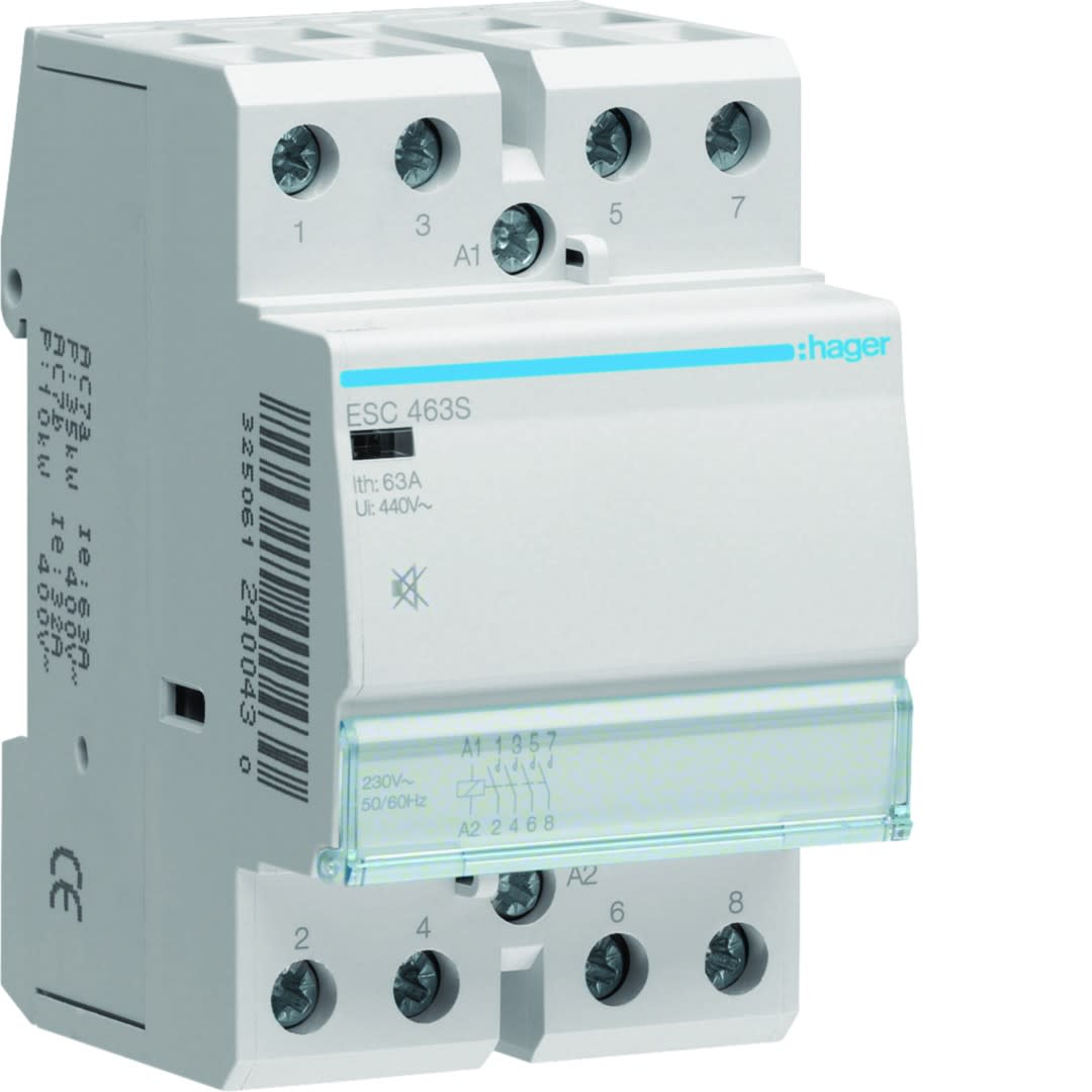Hager - Contacteur silencieux sans commande manuelle 63A, 4F, 230V - ESC463S