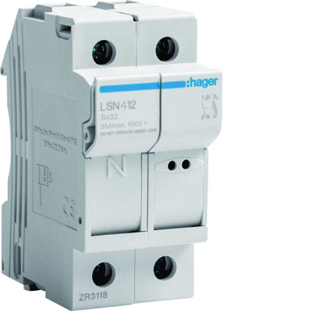 Hager - Coupe-circuit 1P+N 25A 400V L32 2M - LSN412