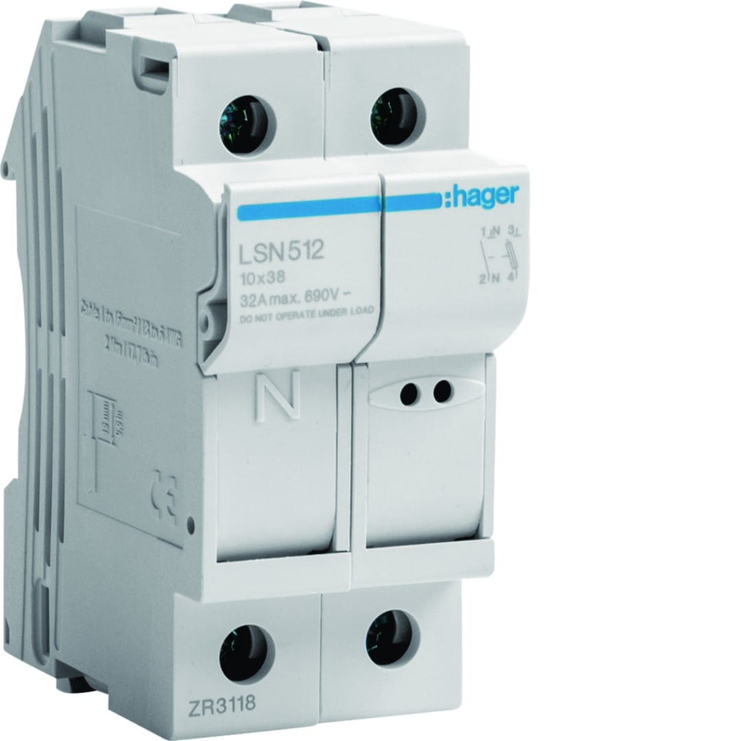 Hager - Coupe-circuit 1P+N 32A 690V L38 2 modules - LSN512