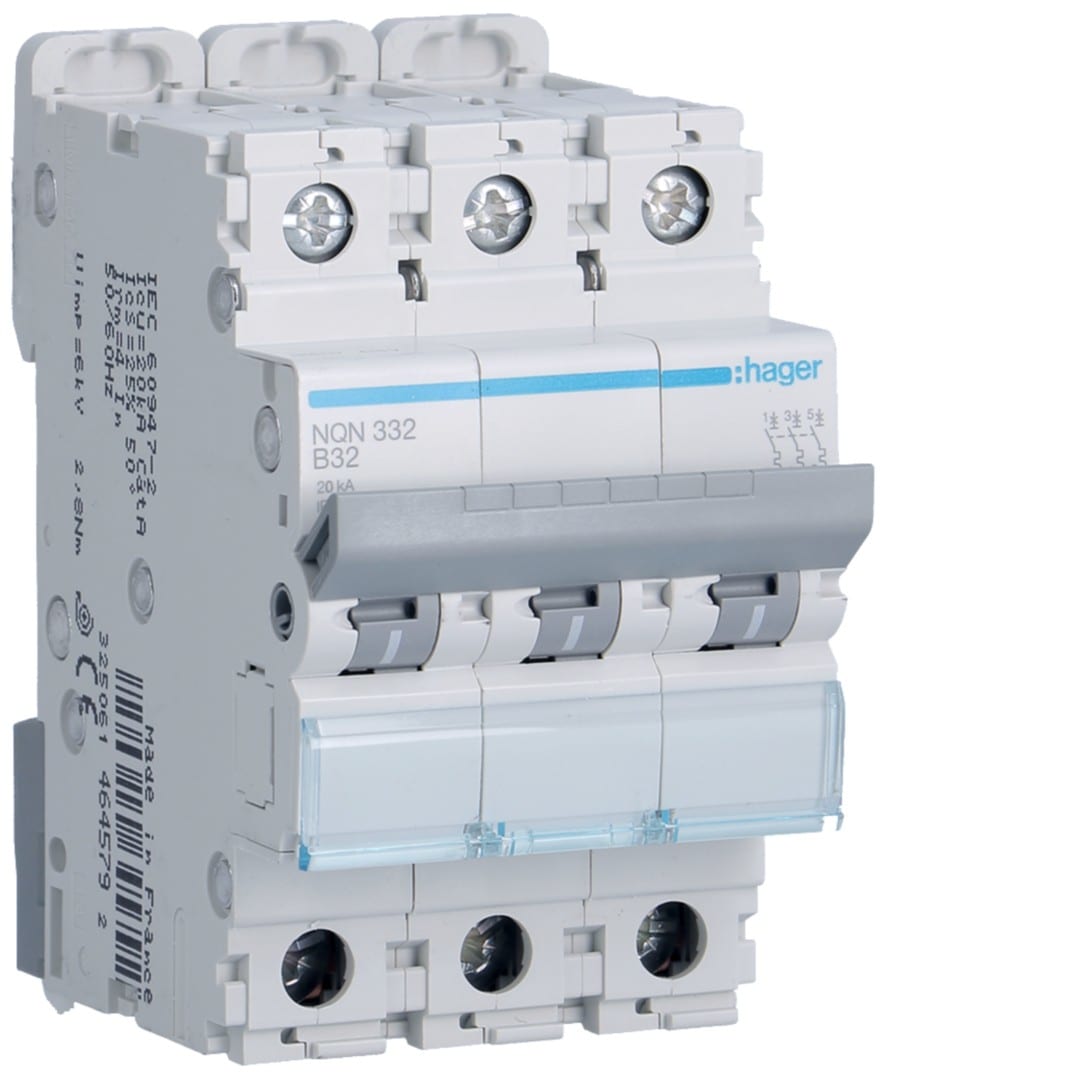 Hager - Disjoncteur 32A 3P 20kA Courbe B 3modules - NQN332