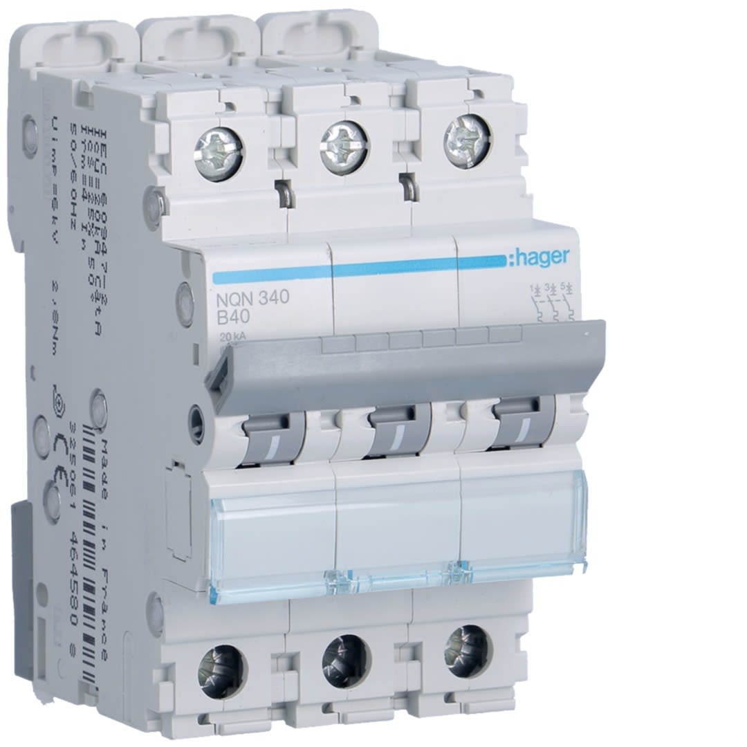 Hager - Disjoncteur 40A 3P 20kA Courbe B 3modules - NQN340