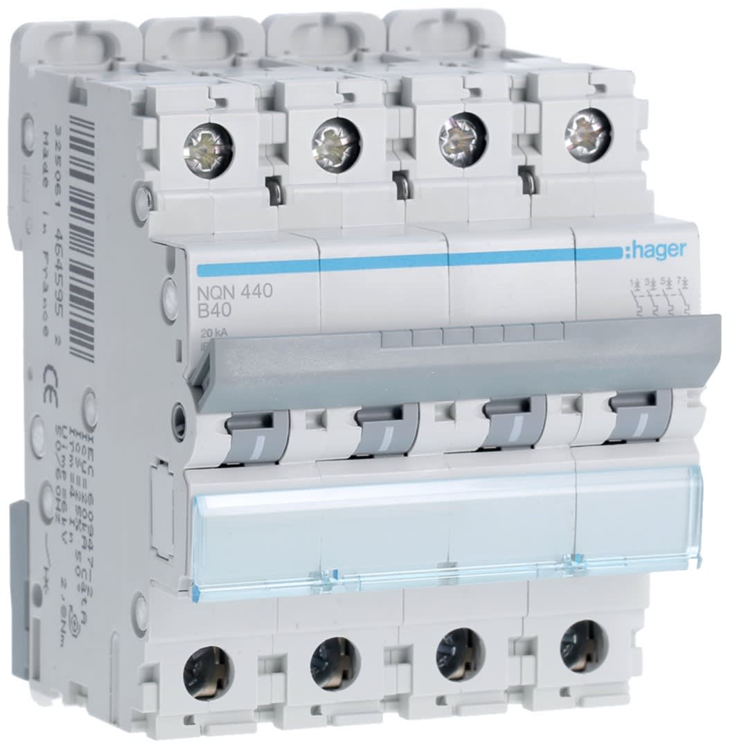 Hager - Disjoncteur 40A 4P 20kA Courbe B 4modules - NQN440