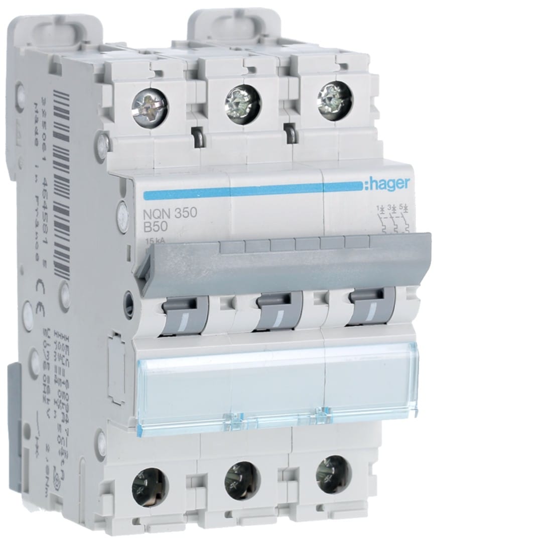 Hager - Disjoncteur 50A 3P 15kA Courbe B 3modules - NQN350