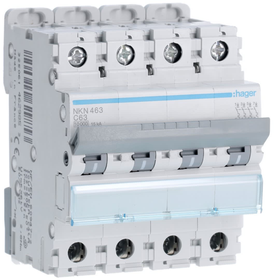 Hager - Disjoncteur 63A 4P 10-15kA Courbe C 4modules - NKN463