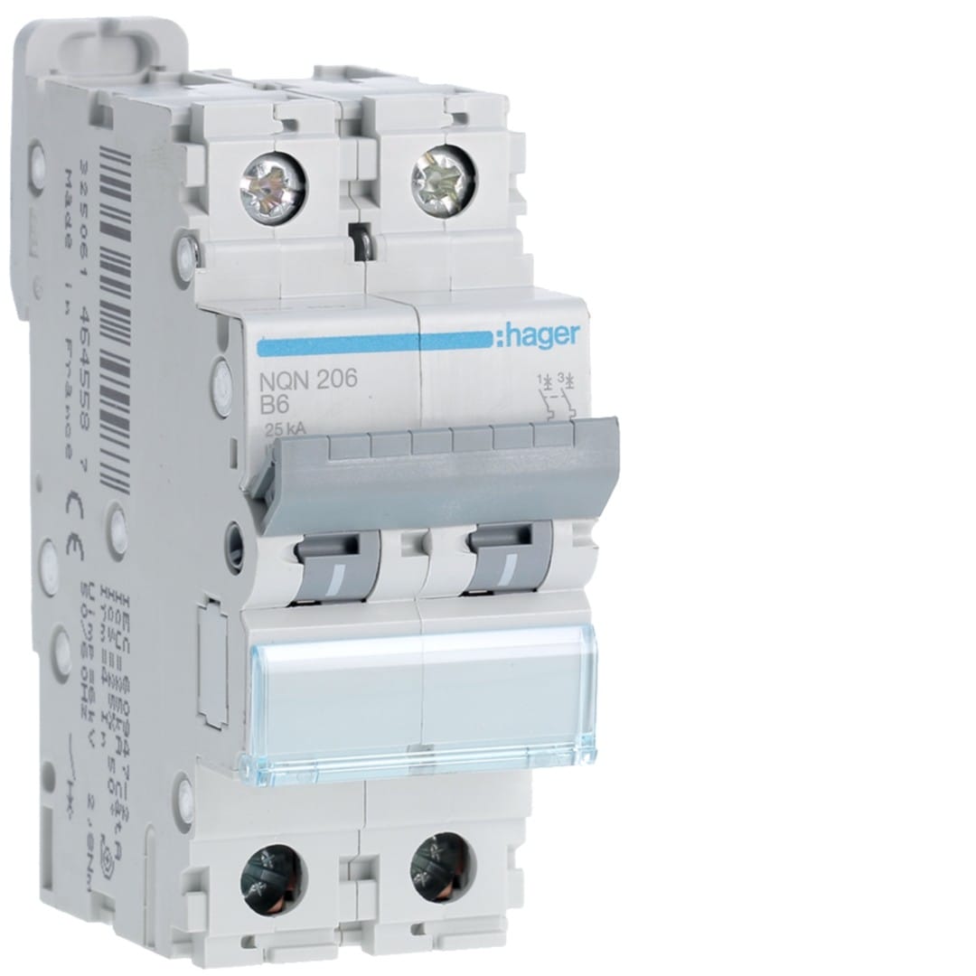 Hager - Disjoncteur 6A 2P 25kA Courbe B 2modules - NQN206