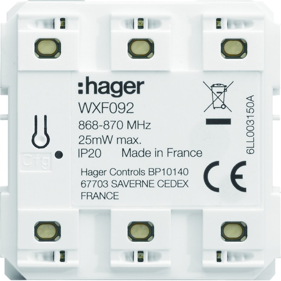 Hager - Emetteur radio mural, gallery, quicklink, plat, pile plate, 2 postes - WXF092