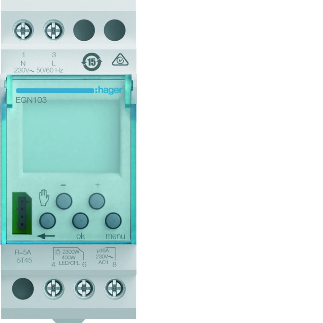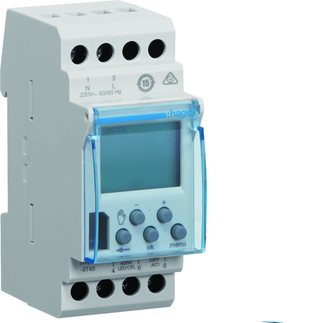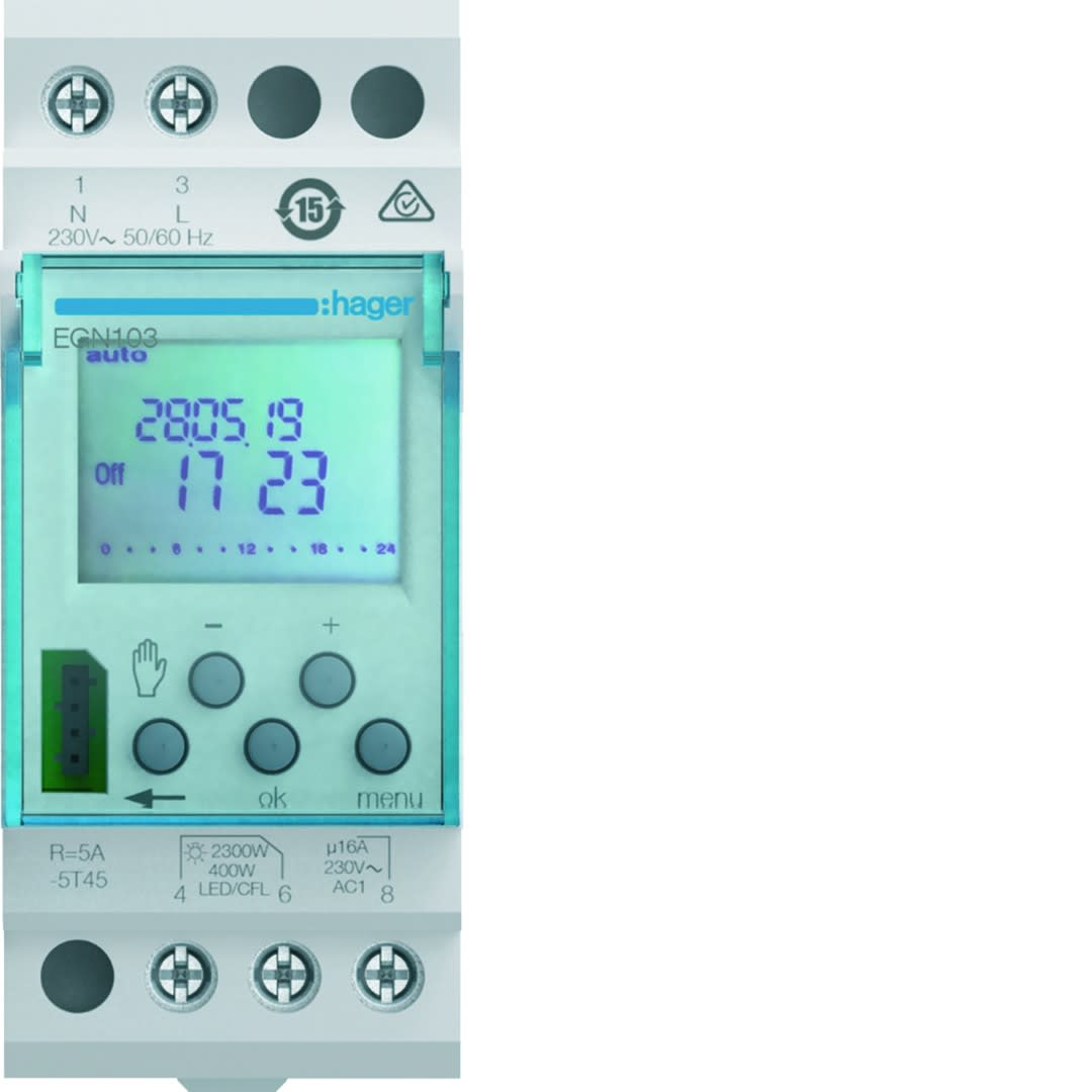 Hager - Interrupteur horaire électronique 1 voie hebdomadaire basique - EGN103
