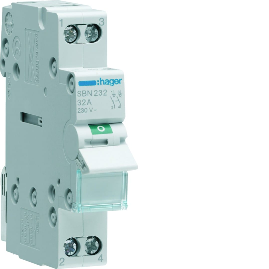 Hager - Interrupteur sectionneur 32A 2P 1 modules - SBN232