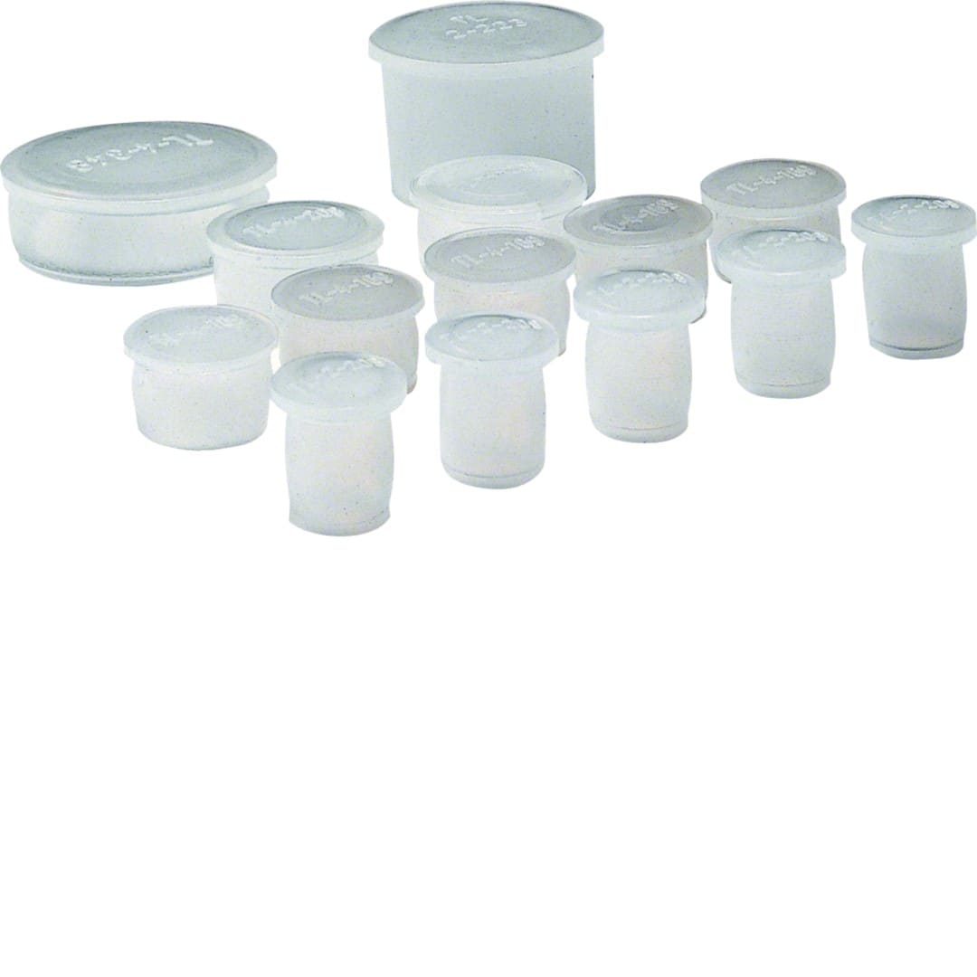 Le FZ401 est un Jeu bouchons plaque étanche pour plaque étanche plastique d'entrée de câble coffret ou armoire FZ402 univers ou quadro evo de Hager. Composition 14 bouchons (5x diam 11, 5x diam 13, 2x diam 19, 1x diam 16 et 1x diam 30mm).