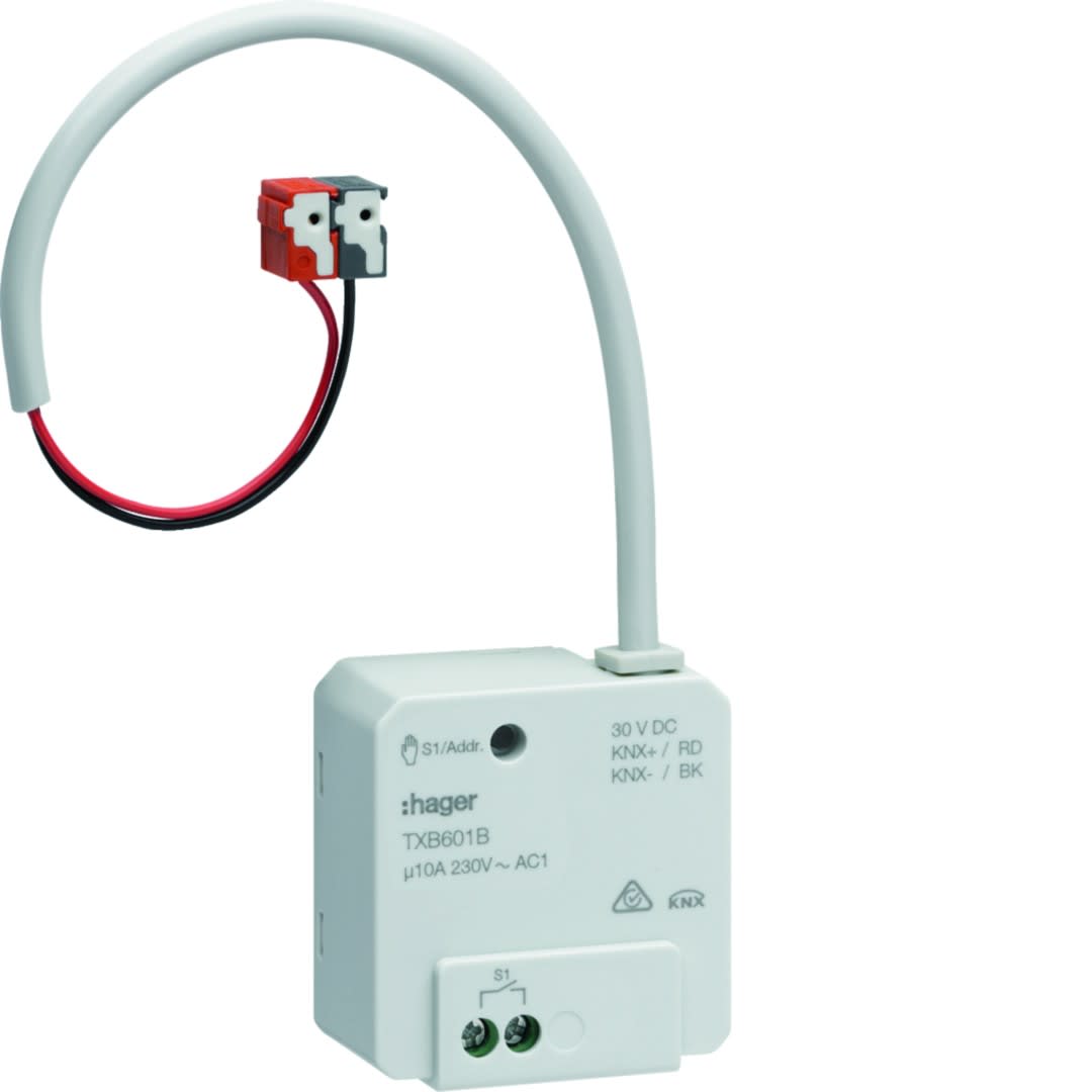 Hager - micromodule filaire 1 sortie 10A ON/OFF et volet, Easy/ETS, KNX filaire - TXB601B