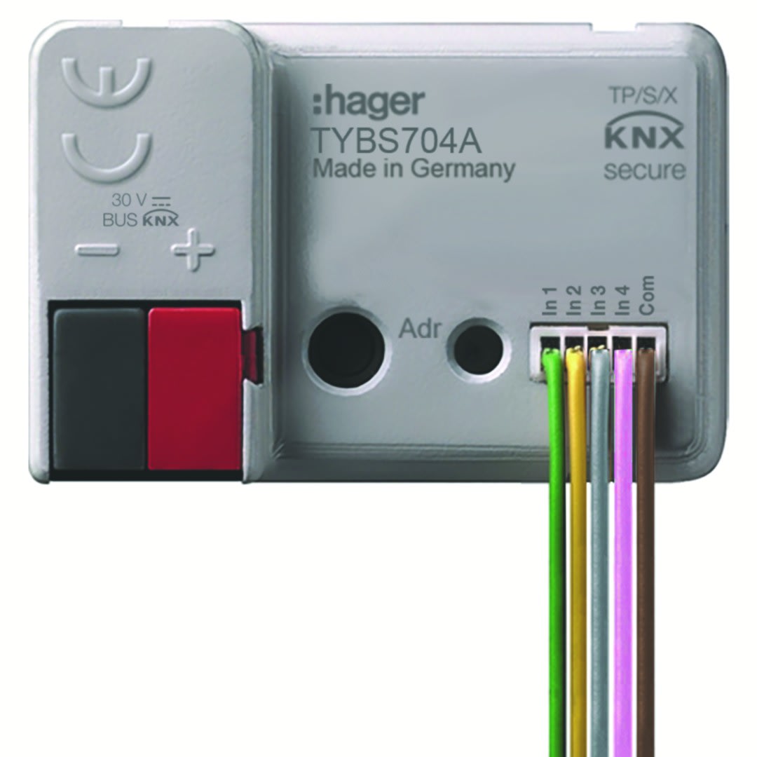Hager - micromodule filaire 4 entrées contacts libres de potentiel, EASY/ETS, KNX Secure - TYBS704A