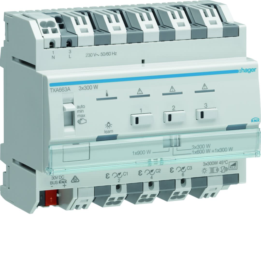 Hager - Module KNX 3 sorties variation éclairage 300W / voie, EASY / ETS - TXA663A