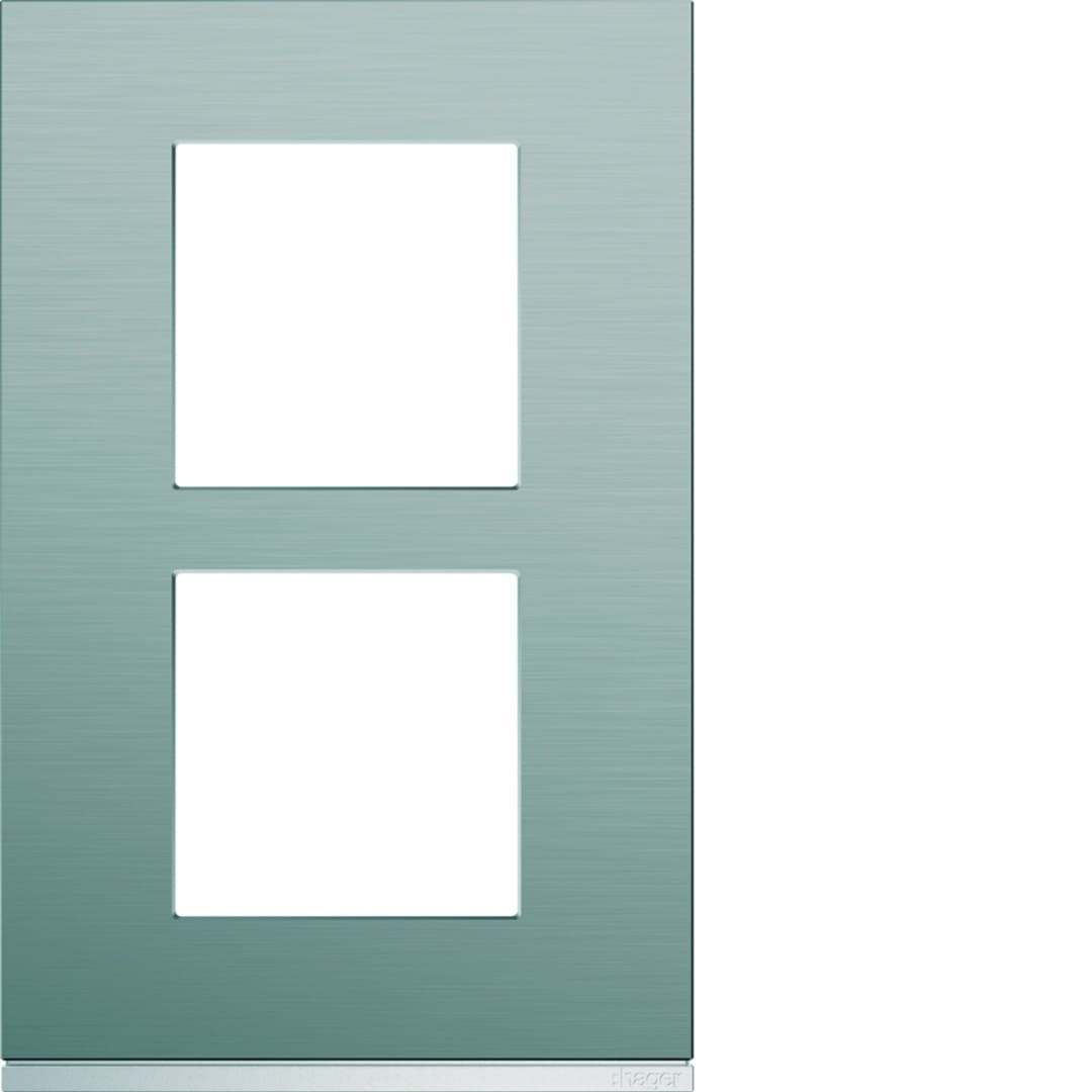 Hager - Plaque de finition gallery 2 postes Bright inox verticale entraxe 57 mm - WXP4222