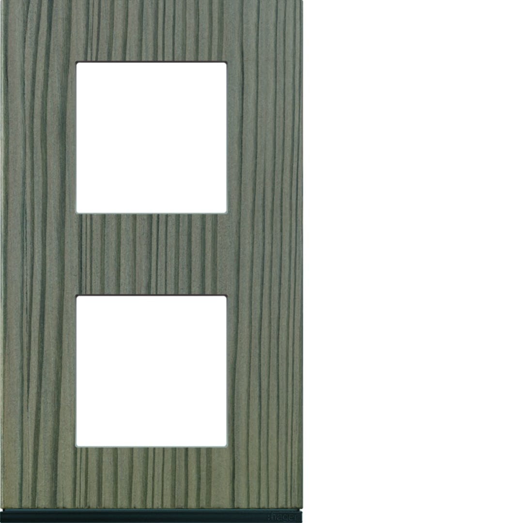 Hager - Plaque de finition gallery 2 postes Grey wood verticale entraxe 71 mm - WXP4842