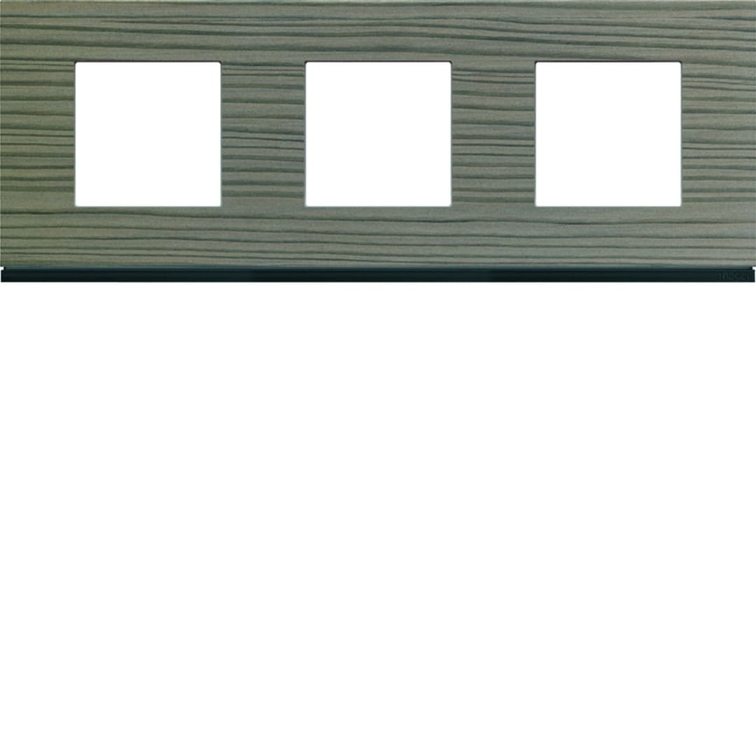 Hager - Plaque de finition gallery 3 postes horizontale Grey wood entraxe 71 mm - WXP4813