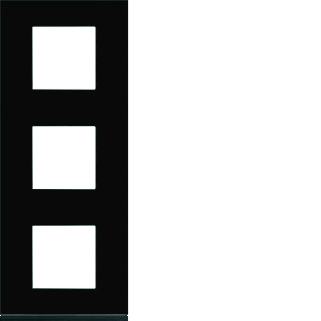 Hager - Plaque de finition gallery 3 postes verticale Midnight glass entraxe 71 mm - WXP4143