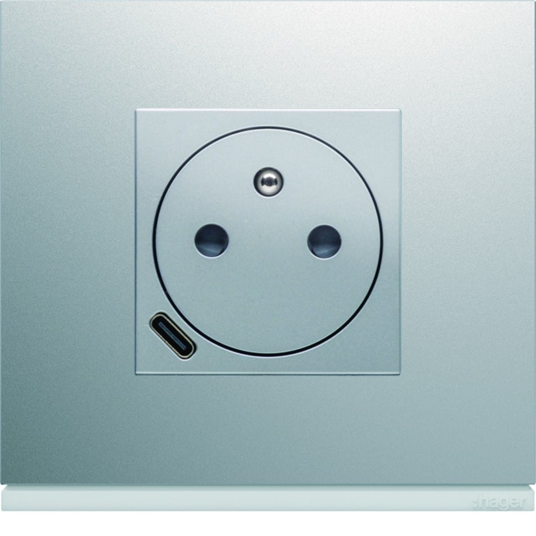 Hager - Prise de courant affleurante 2P+T avec USB-C Titane - WXF114T