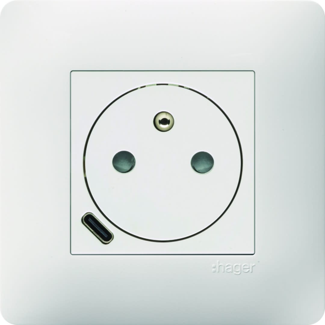 Hager - Prise de courant affleurante Essensya 2P+T avec USB-C Pure - WE114