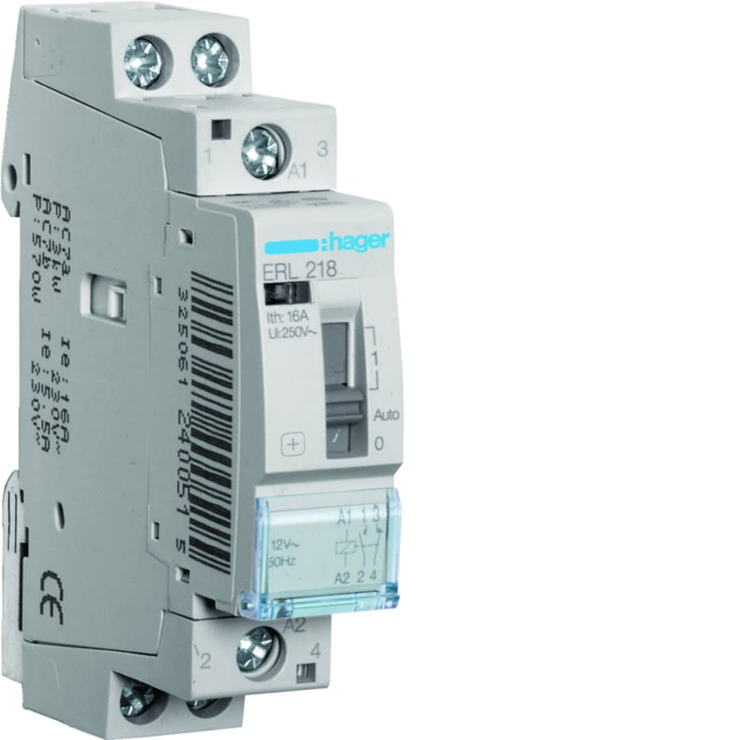 Hager - Relais de commande 16A, 1F+1O, 12V 1 module - ERL218