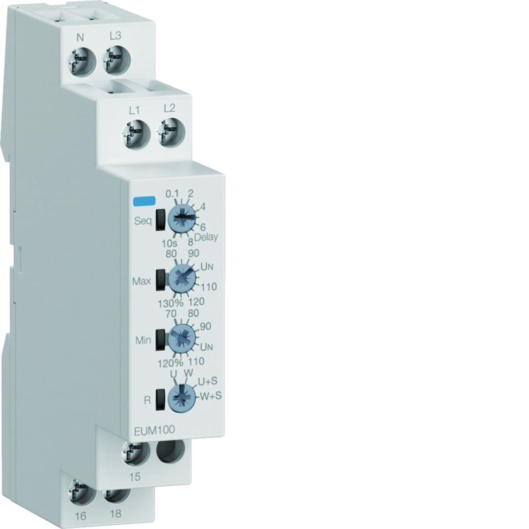 Hager - Relais de contrôle tension et phase 1P+N/3P(N) 1 contact inverseur - EUM100