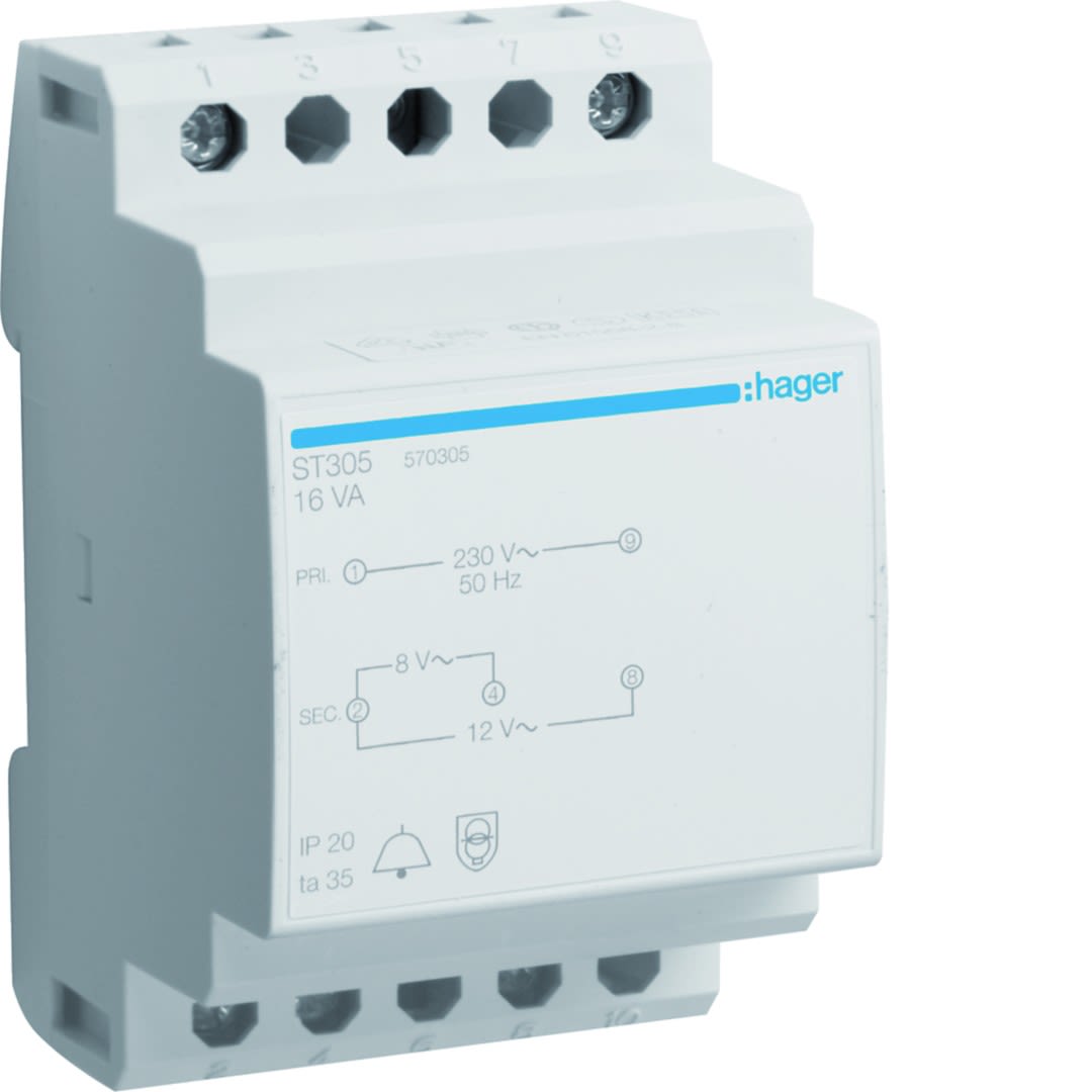 Hager - Transformateur de sonnerie 16VA 230VAC - 8 - 12VAC 3 modules - ST305