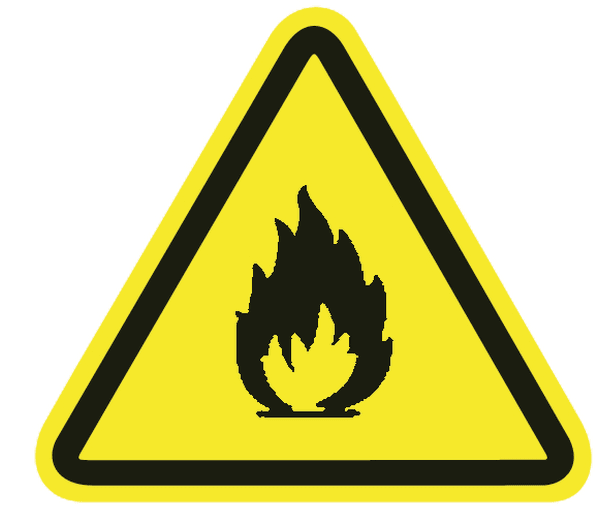 Etiquettes pré-imprimées "Inflammable", Vinyle (PVC), Jaune, longeur 200 mm, conditionnement par 10