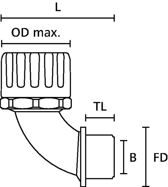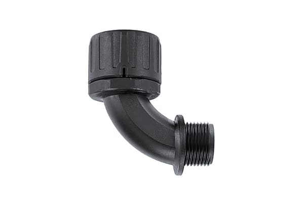 Raccord coudé 90° HELAGUARD HG16-90-PG13, Ø nominal 16, polyamide 6.6 (PA66), noir, UL94 V2, IP66, température d'utilisation de -50°C à +135°C, filetage externe, sans halogène, sachet 10 pcs