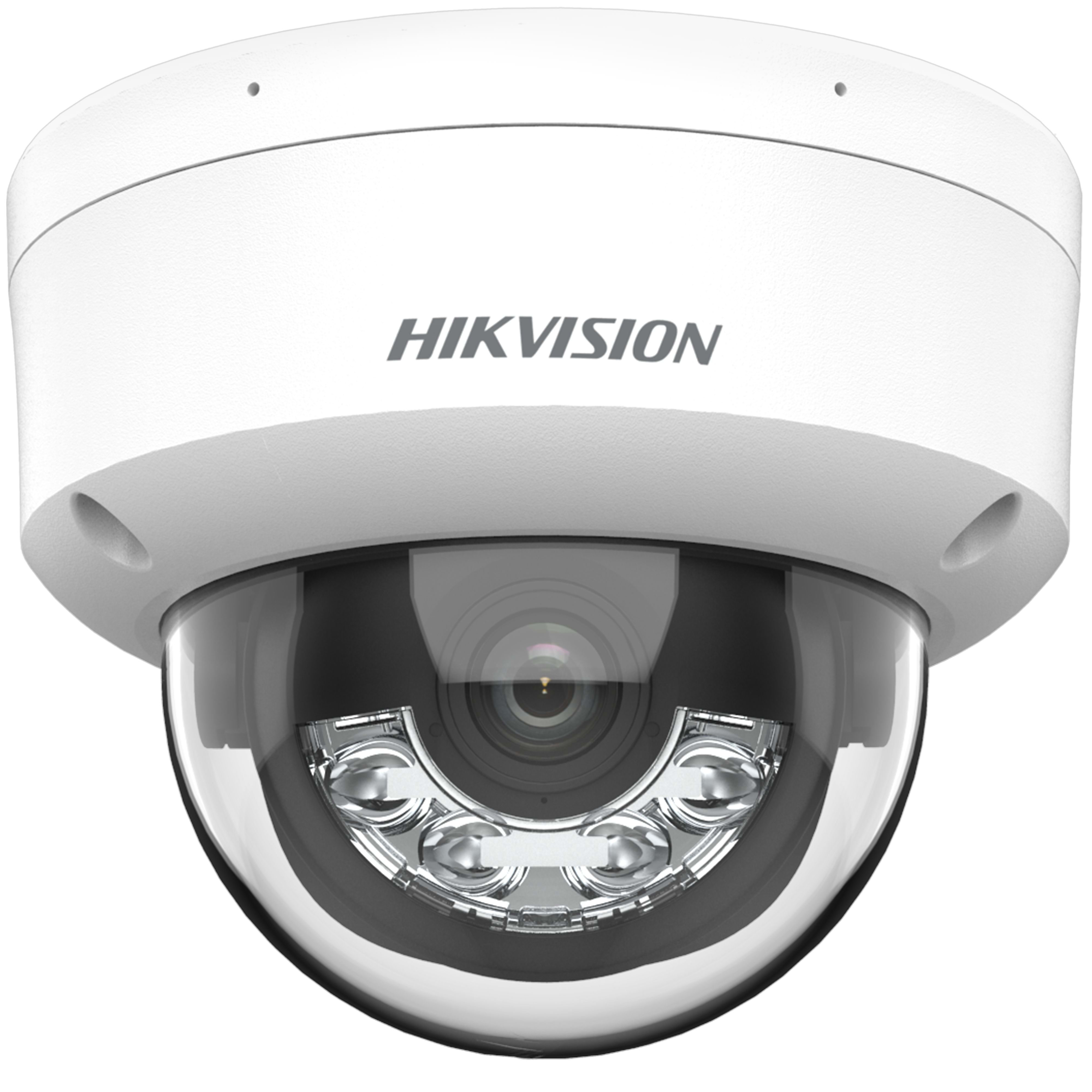 Caméra dome 8MP avec AcuSense, Smart Hybrid Light (4 modes), double micro 2U, WDR 120 dB, compression H.265+, robuste IP67/IK10 pour une sécurité claire, précise et fiable en toutes conditions.