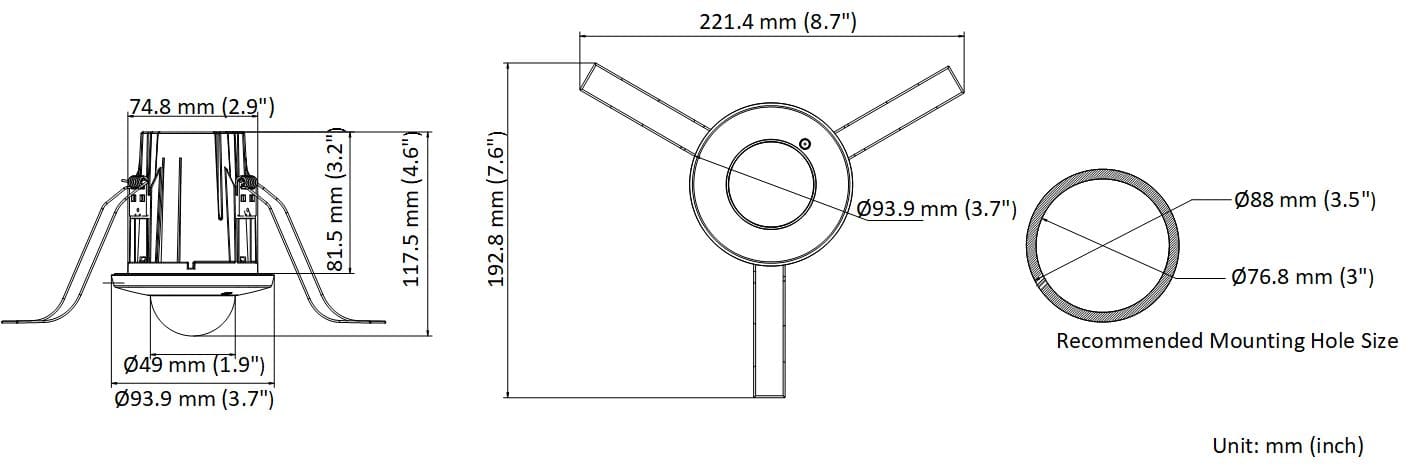 Mini-Dôme encastrée au plafond. Imagerie 4MP de haute qualité, WDR 120 dB pour contre-jour, compression H.265+ efficace. Micro intégré pour sécurité audio en temps réel. IA pour classification des cibles humaines et véhiculaires.