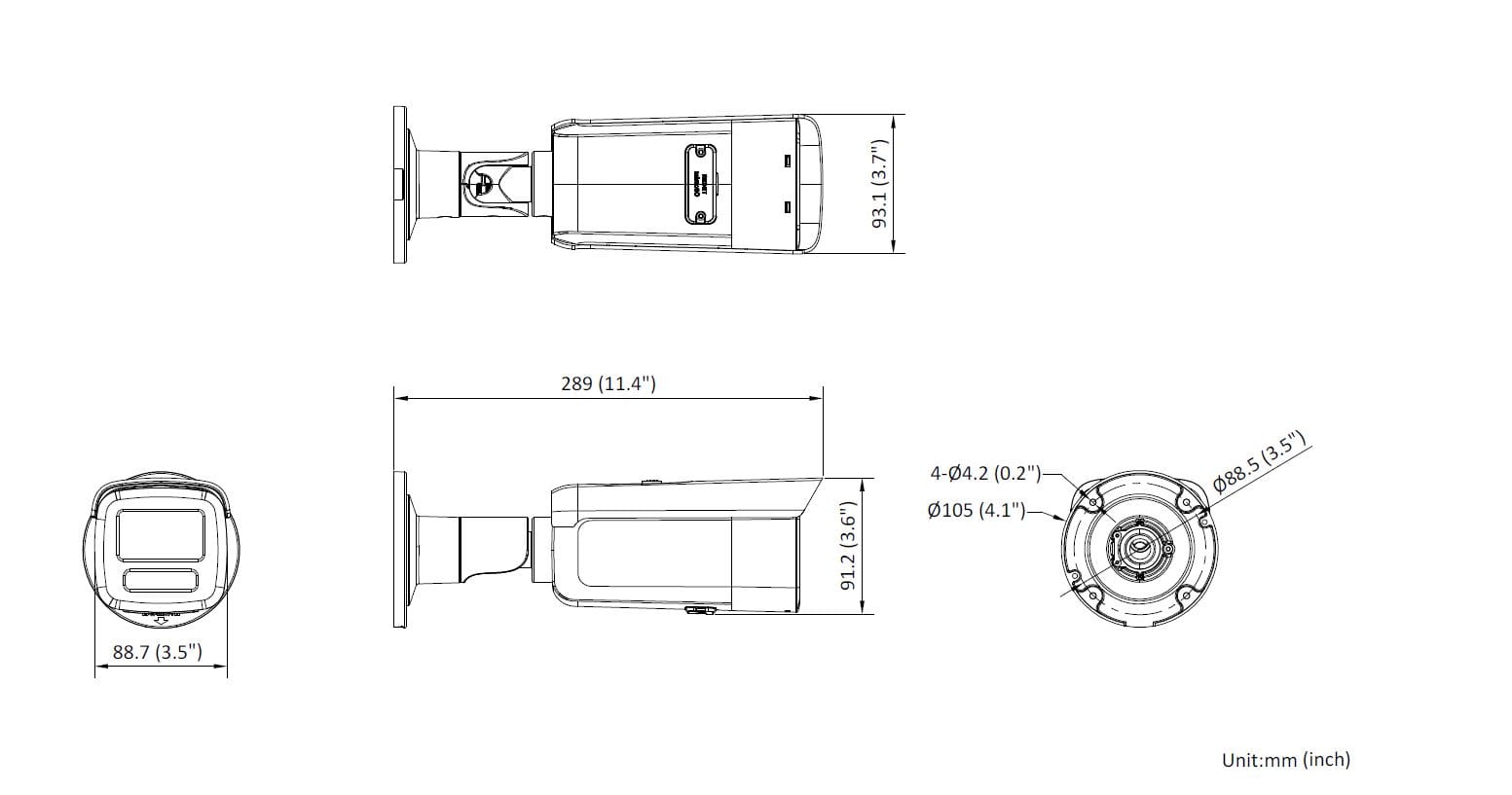 Caméra Bullet Acusense Extérieur 2MP Focal Fixe Color: 0.005 lux @ (F1.6, AGC ON), 0 lux with IR; 25fps/30fps(1920×1080); VCA functions; 3 streams; DC12V&PoE; Built-in micro SD/SDHC/SDXC slot;*-2I/4I model: up to 60m/80m IR