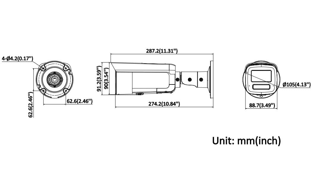 • taille de distance focale - 2.8...4 mm