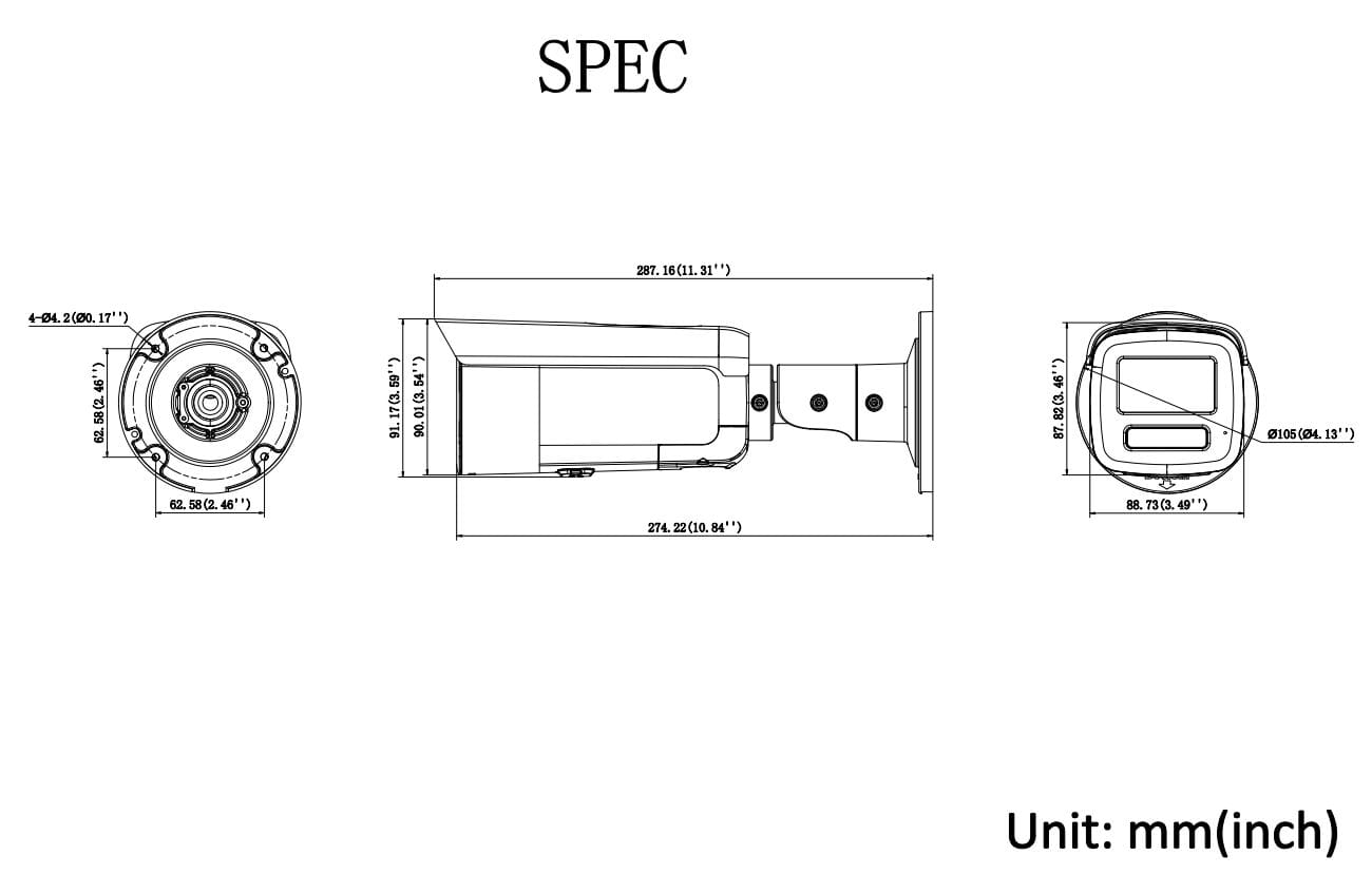 Caméra IP bullet 4MP ColorVu 3.0 pour l'image coloré 24/24, classification des cibles humaines et véhiculaires Live Guard, IR longue portée 40m avec Smart Hybrid Light, micro et haut-parleur pour l'audio bidirectionnel, IP67, anti-corrosion