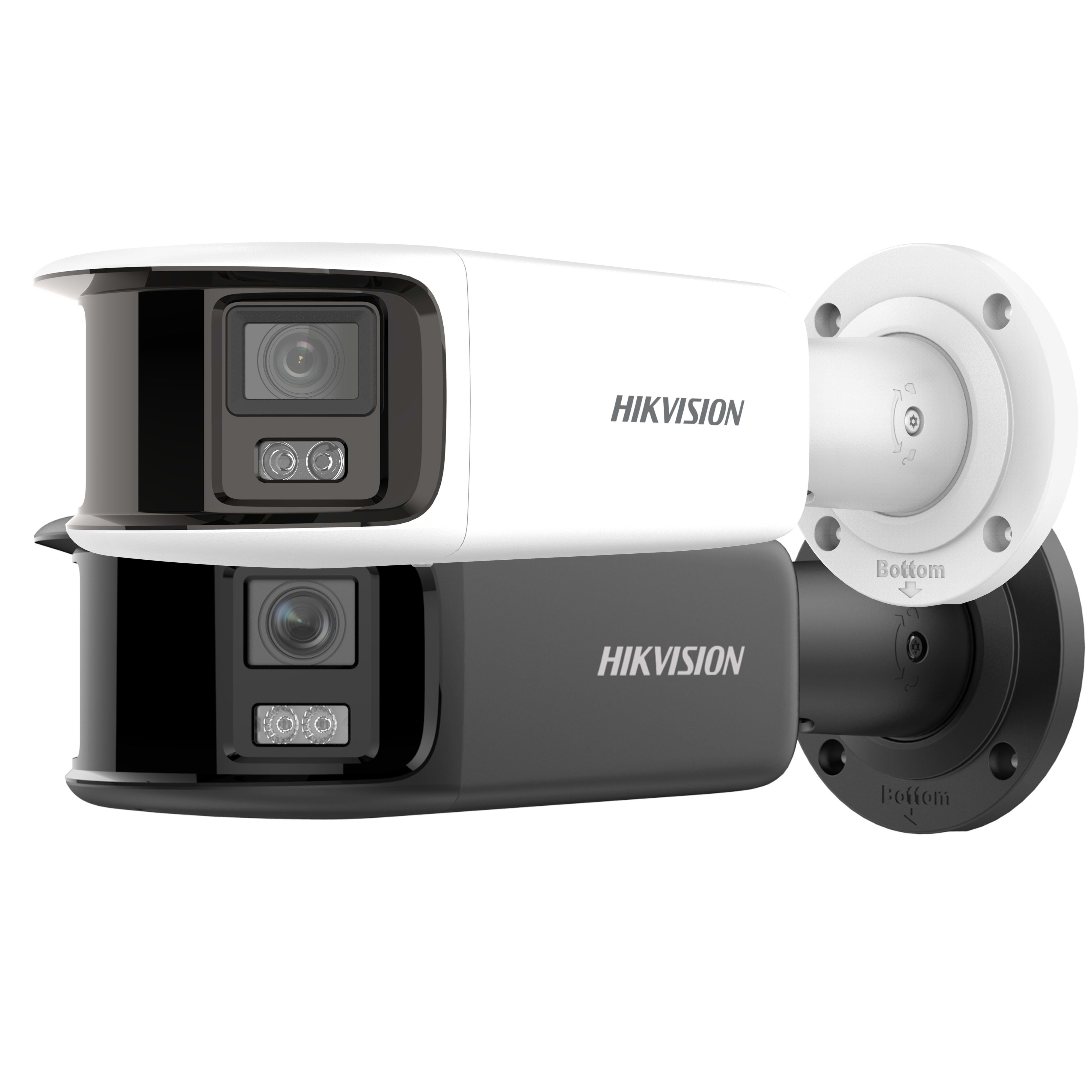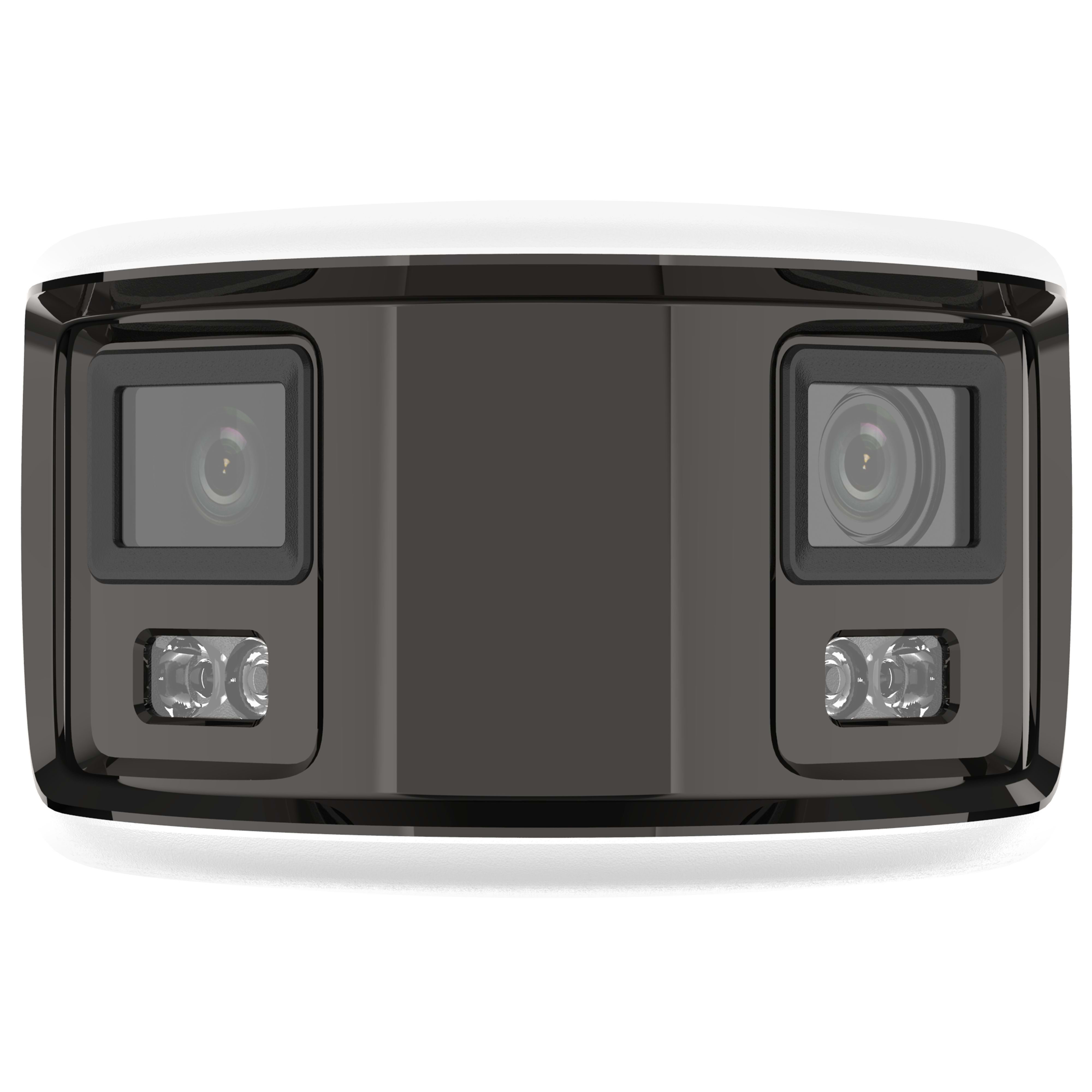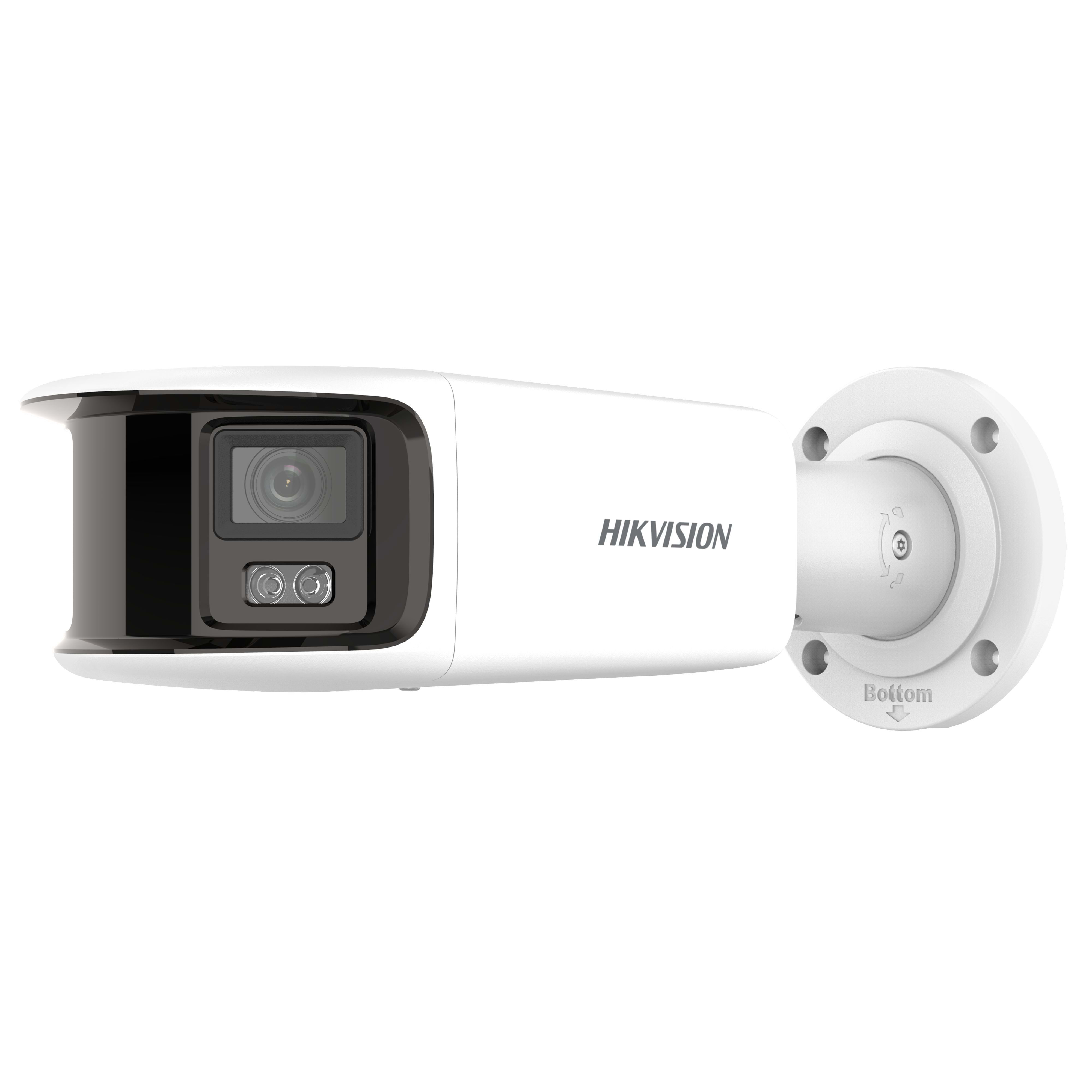 Caméra Bullet Panoramique 180 ColorvuCMOS 2*1/1.8"Couleur : 0,0005 lux @(F1.0, AGC ON), 0 lux avec LED alluméefonctions VCA ; 2 flux DC12V&PoE ; Service cloud HIK-ConnectMicrophone et parleur intégrés, E/S audio/alarme
