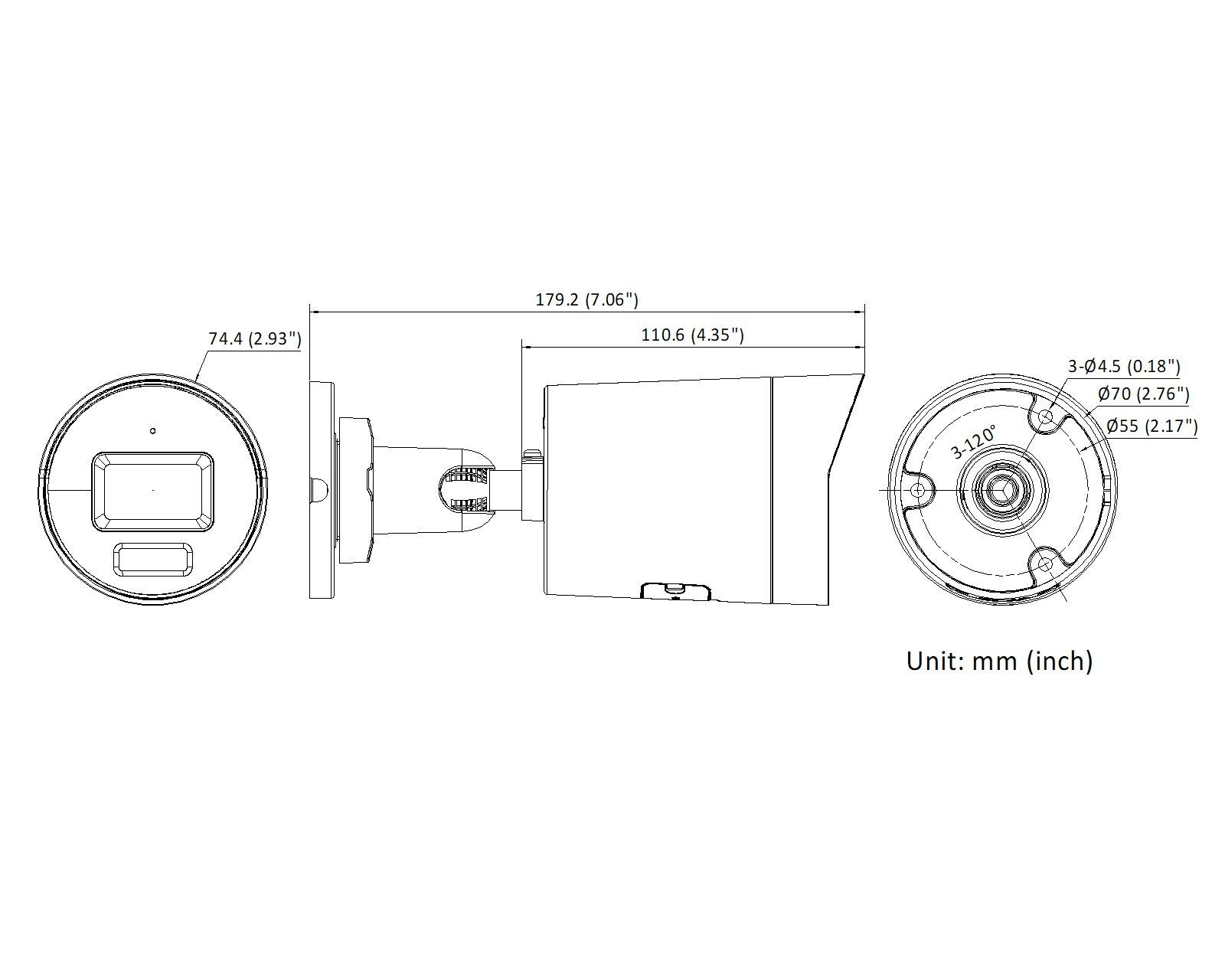 Caméra Bullet 4MP 2.8mm fixed, Motion detection pour classfifier les cibles humaines et véhivulaires,Vue claire nocturne,IR 40m,1 microphone intégré, IP67.IK10.conçu projet