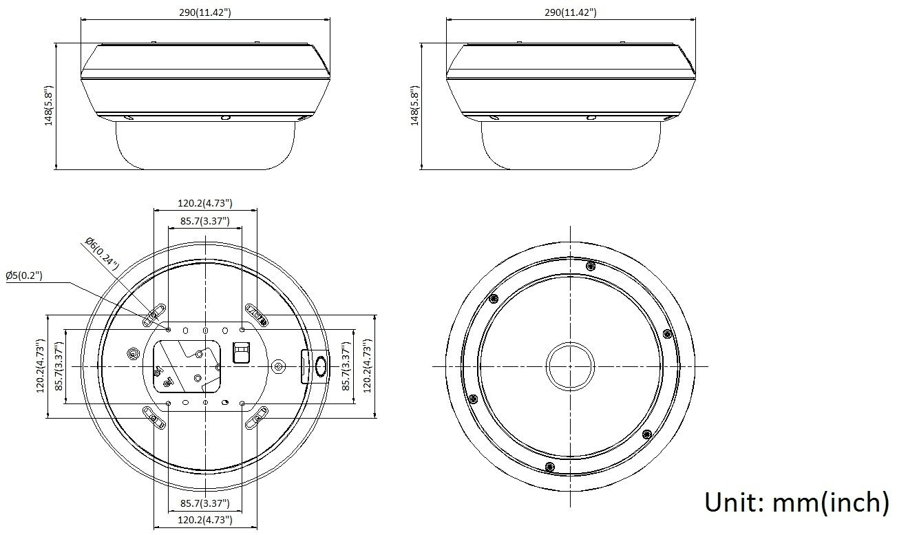 Panoramic Dome, 4 MP*4, 360° view,Focal Motorisé 2.7-13,5mm,0,0005 lux @ (F1.2, AGC activé) 25 ips/30 ips (2688 × 1520) ; Fonctions VCA ; 3 flux ; EXIR, jusqu'à 30m; E/S audio/alarme ; DC12V&PoE ; SD/SDHC/SDXC intégré,