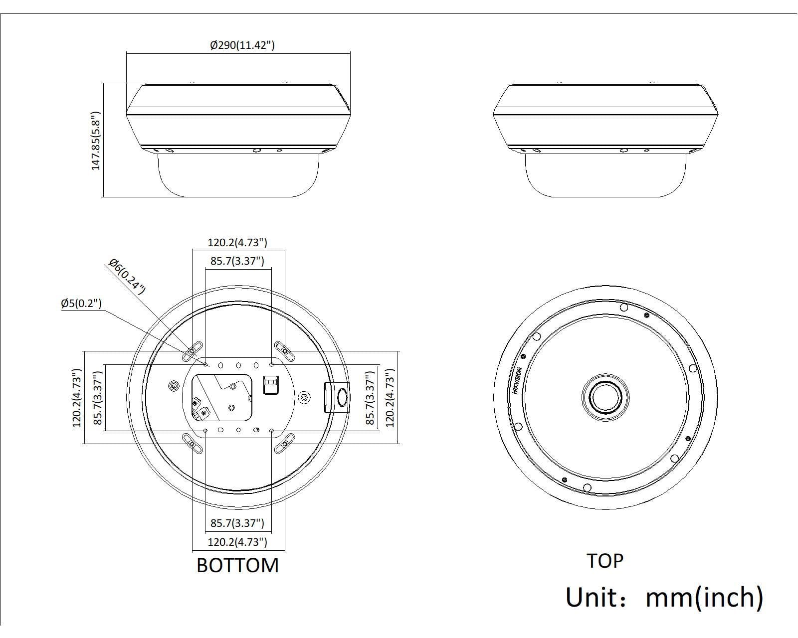 Caméra Panoramique, 5MP*5, 360° view, acusense, 4 lens Focal Motorisé 2.8-8mm, 1 lens 2mm,0,0005 lux @ (F1.2, AGC activé) ; Fonctions VCA ; 3 flux ; EXIR, jusqu'à 50m; E/S audio/alarme ; DC12V&PoE ; SD/SDHC/SDXC intégré,
