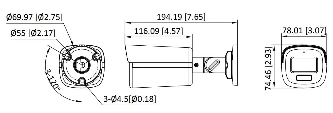 Caméra bullet analogique 2MP, focale fixe 2.8mm, portée vision nocturne 40m (IR), micro intégré, IP67