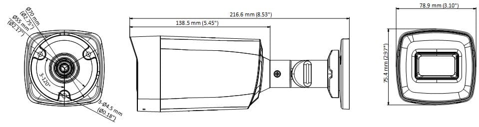 5MP@20fps, 4MP@25fps(P)/30fps(N)(Default), EXIR, 40m IR, Outdoor EXIR Bullet, ICR, 0.01 Lux/F1.2, 12 VDC, Smart IR, DNR, OSD Menu(Up the Coax), IP67, 2.8/3.6/6/8/12mm Lens,Support TVI/AHDVIVBS video signal output