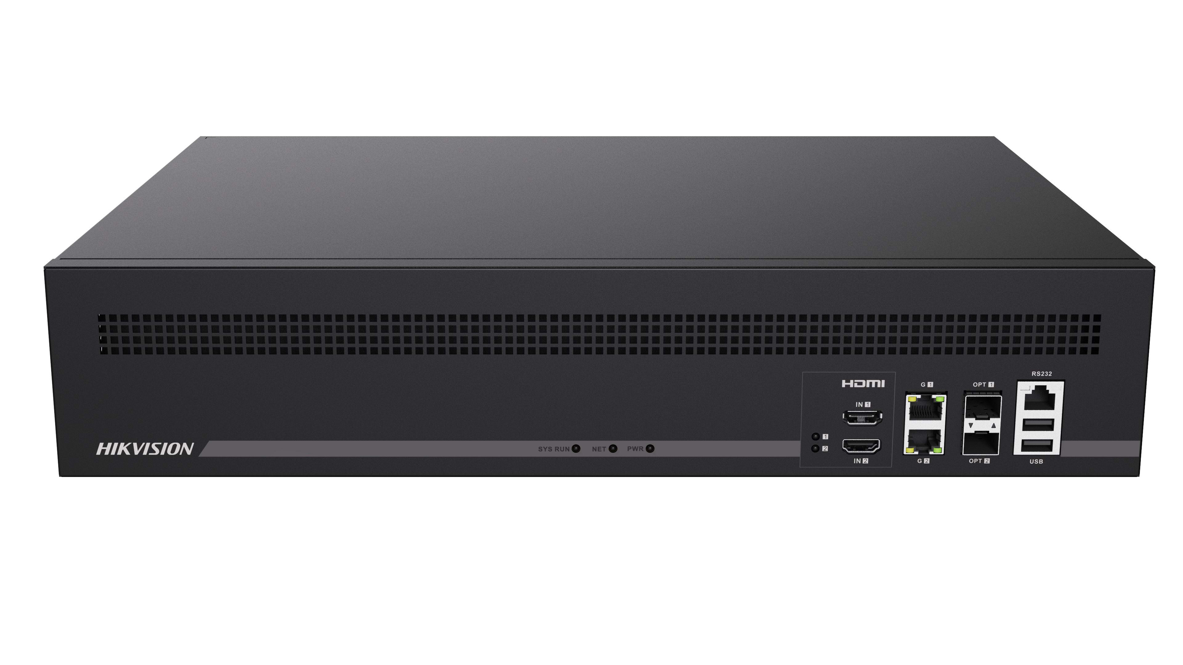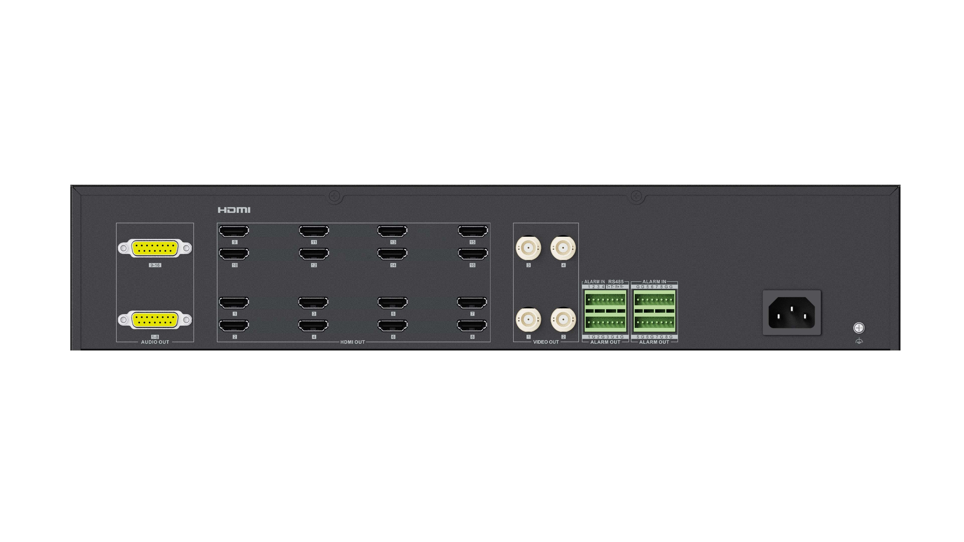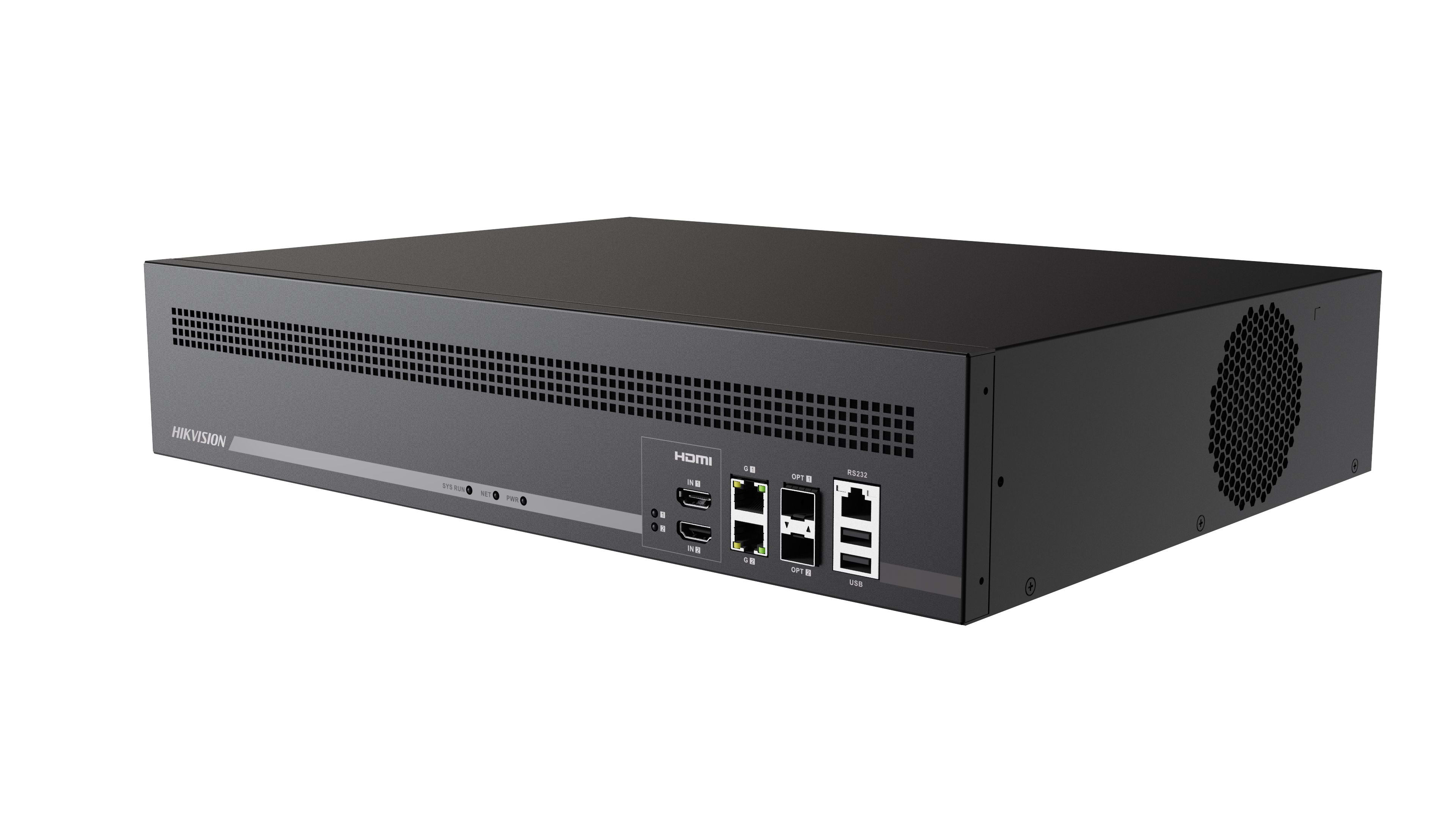 16HDMI/8BNC,1VGA/1DVI, le HDMI 3840*2160@30HZ, capacité de décodage 24MP@30fps: 8 canaux, 12MP@20fps: 16 canaux, 8MP@30fps: 32 canaux, 5MP@30fps: 48 canaux, 3MP@30fps: 80 canaux, 1080p@30fps/3 Mbps: 128 canaux, max 36 divisions.